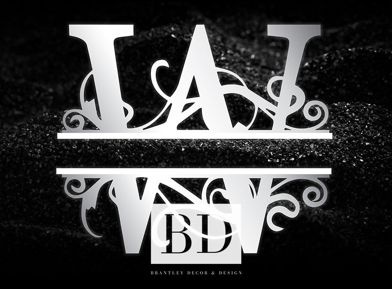 State your name with this expressive split-initial monogram.  Bold, yet strikingly elegant, this customizable art piece is designed to inspire pride upon its viewers.  Adorn your own wall/ space or gift it to a loved one for their new home, birthday, graduation, or another celebration of advancement.