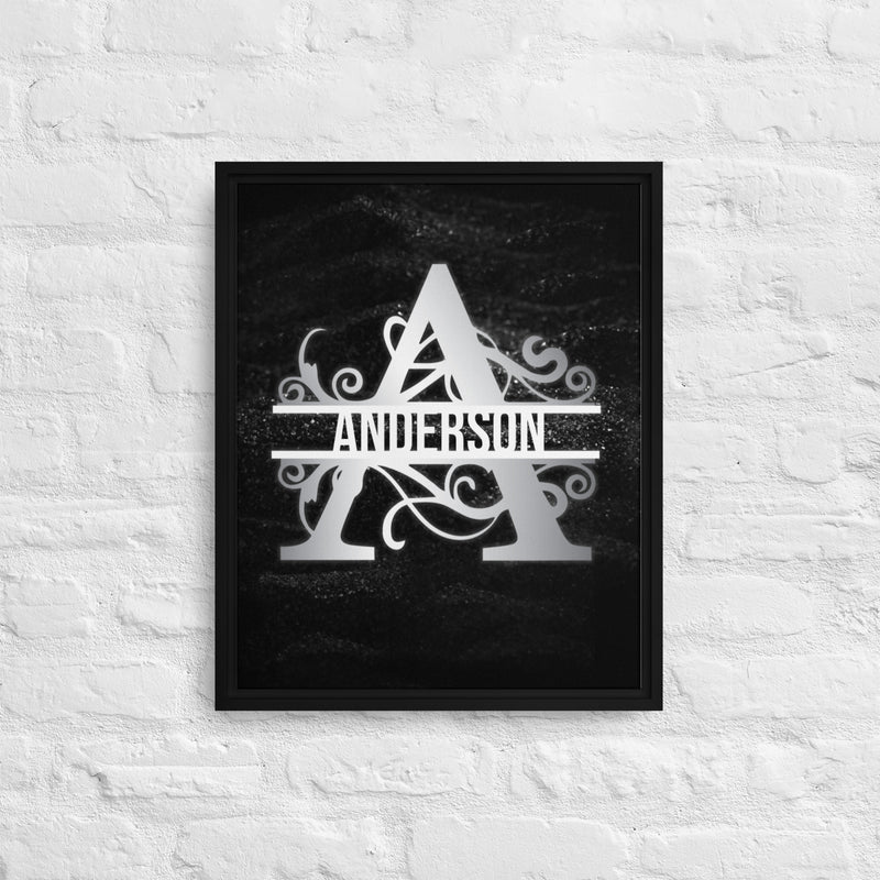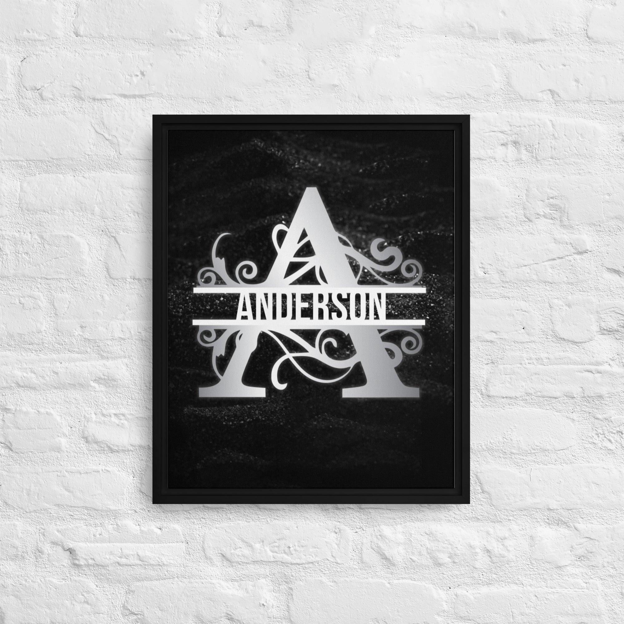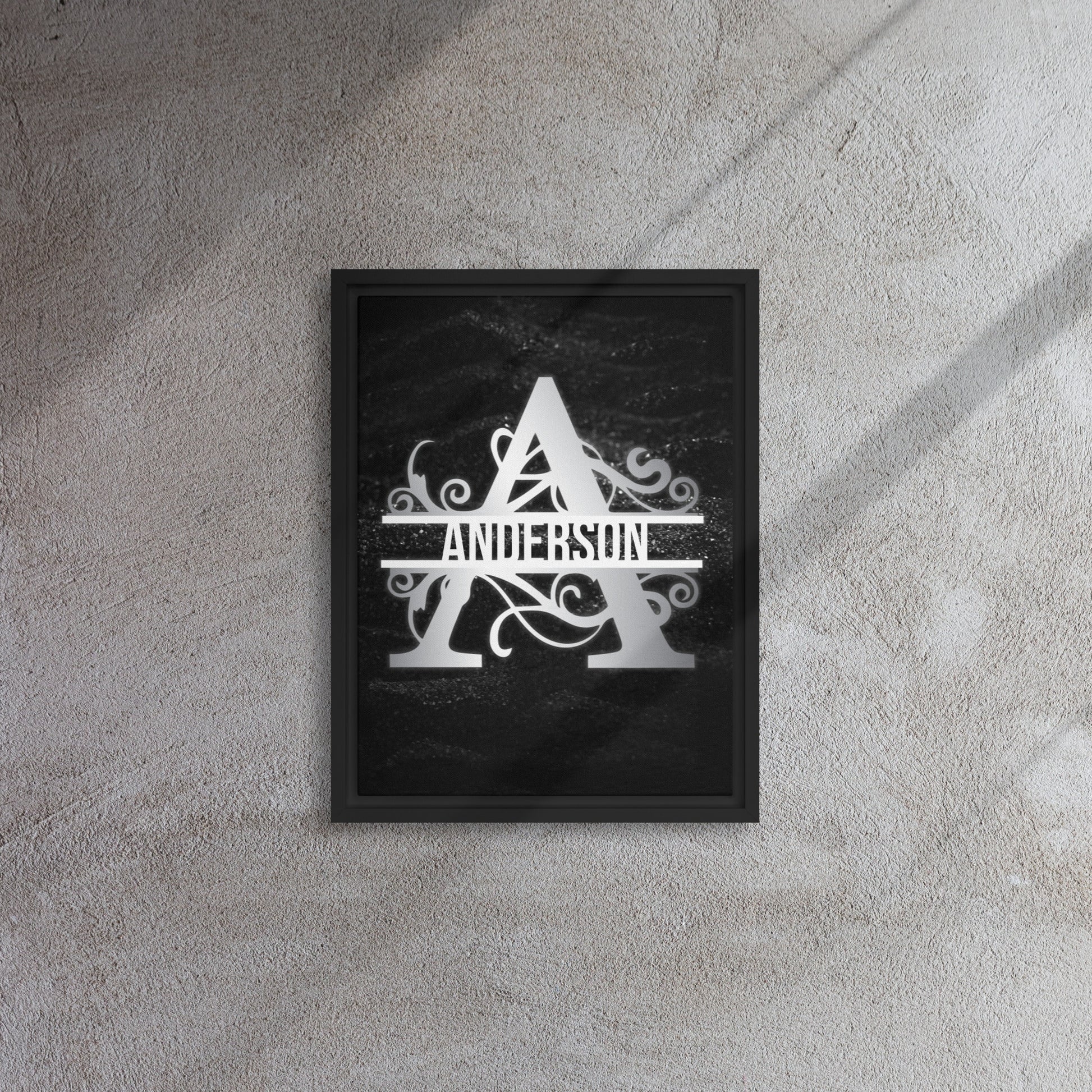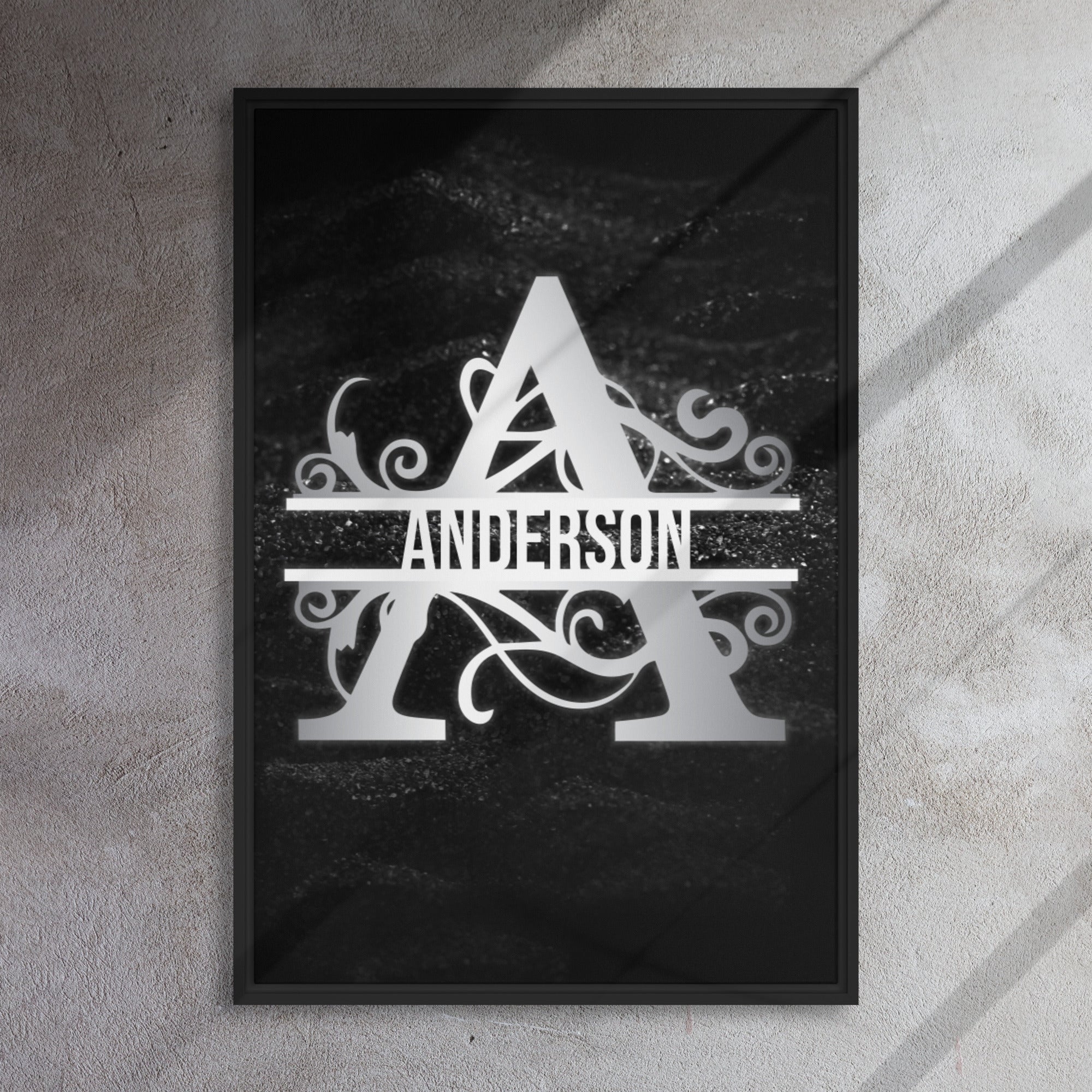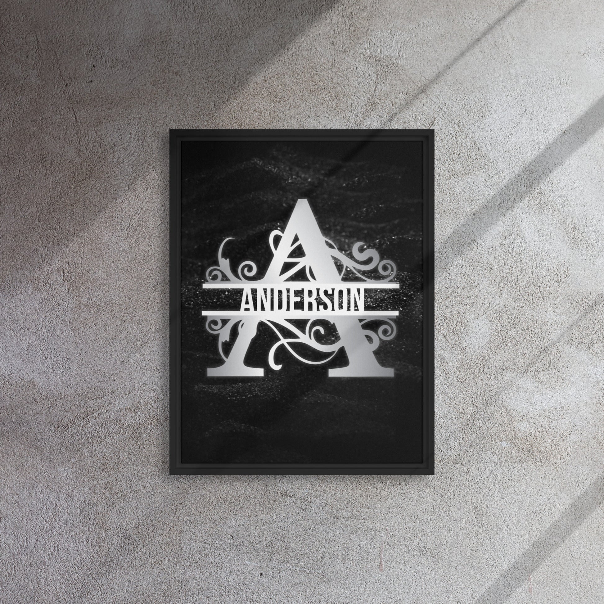 A Black & Chrome Vertical Split Initial Monogram on Canvas