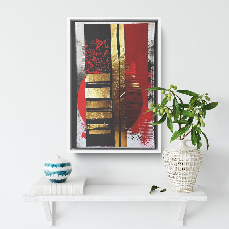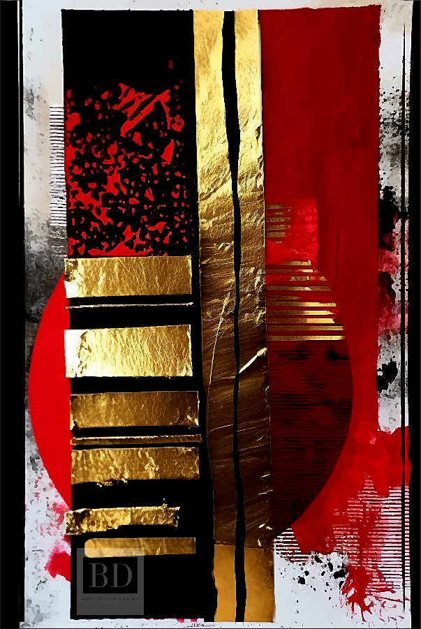Through THE Mind's eye series features creations from deep inside the imagination. Keep it cool, dark, and mysterious. Abstraction Fields Portal Red Void will help give your space the intrigue you want your visitors to feel when the enter the space. It features paint and gold metalic textures for even more depth. What size works best for your space?