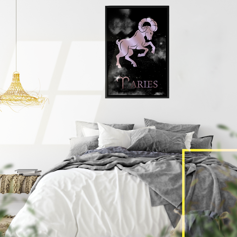 Introducing our stunning zodiac print on black framed canvas, perfect for astrology enthusiasts and anyone looking to add a touch of celestial beauty to their home decor. The metallic themed