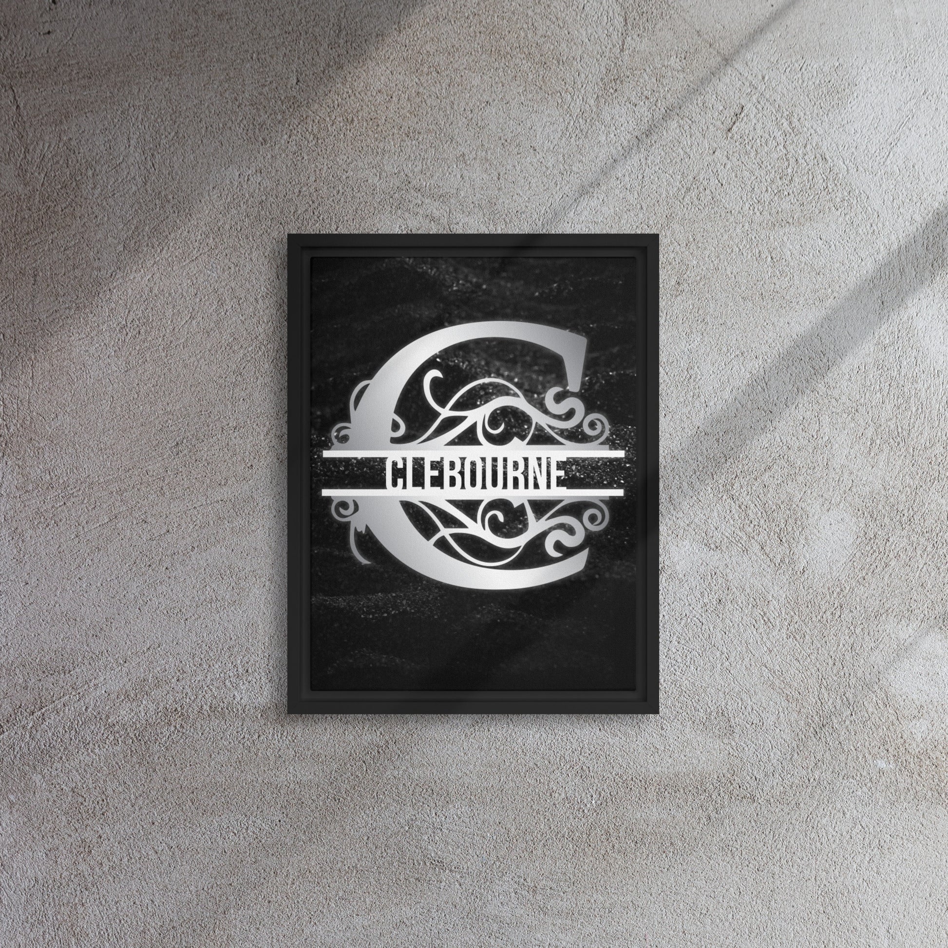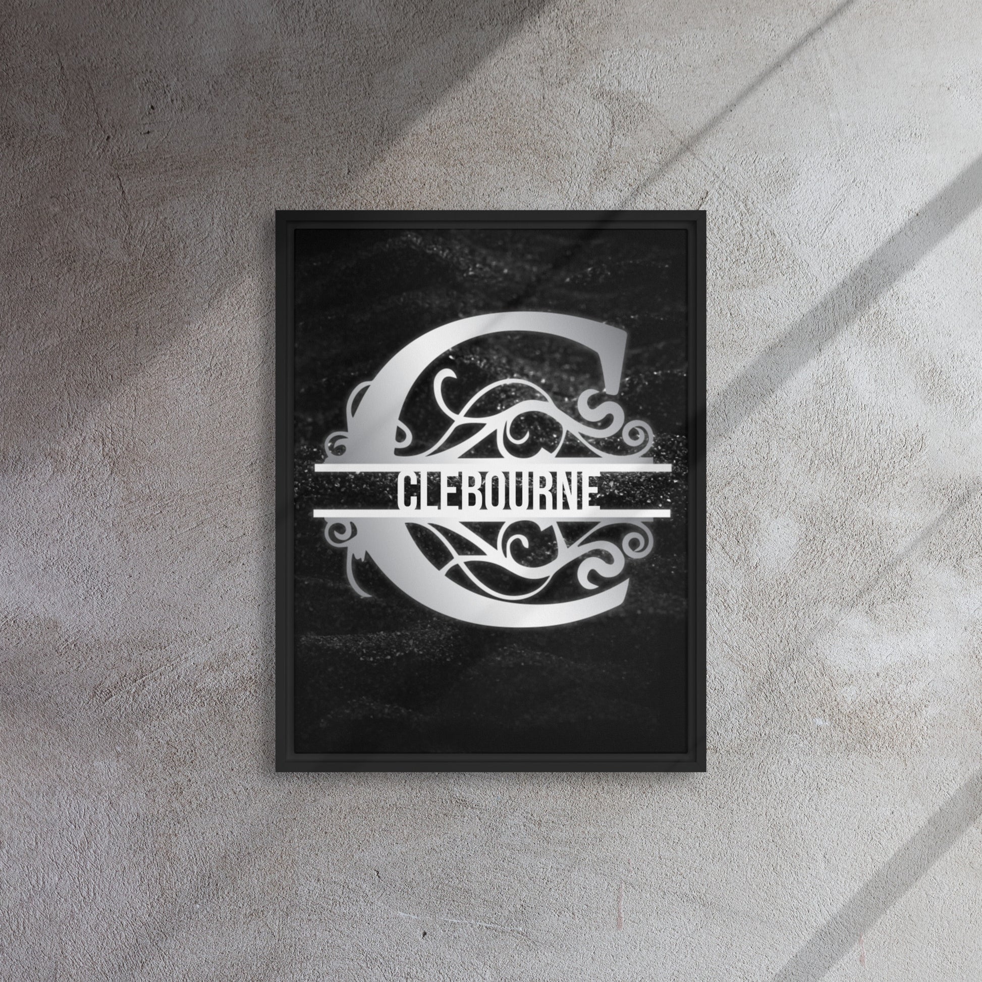 C Black & Chrome Vertical Split Initial Monogram on Canvas