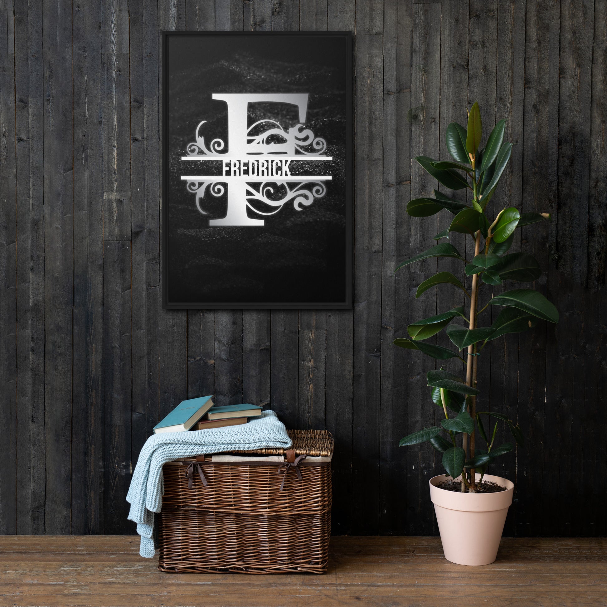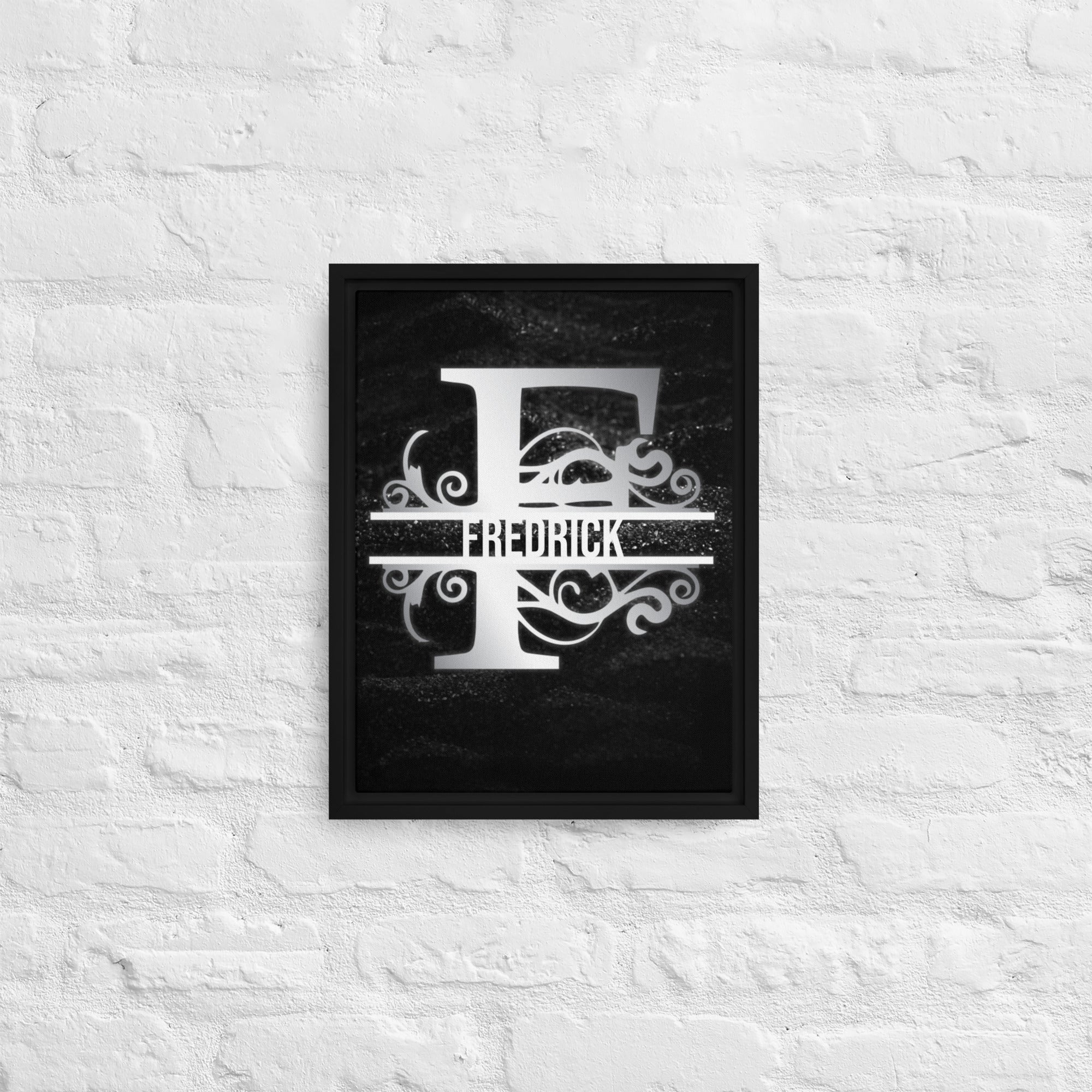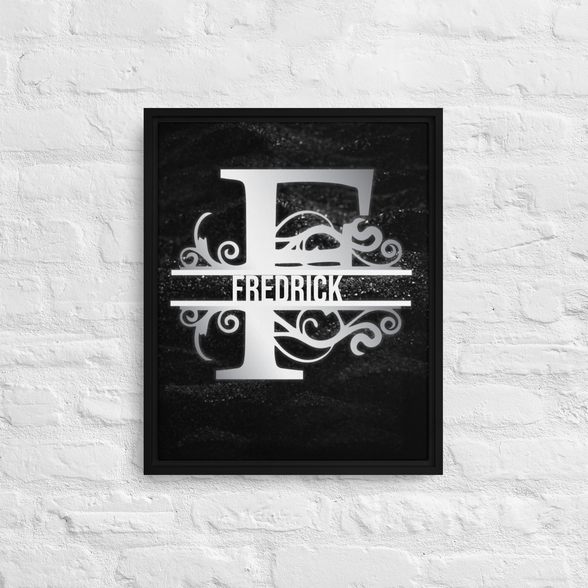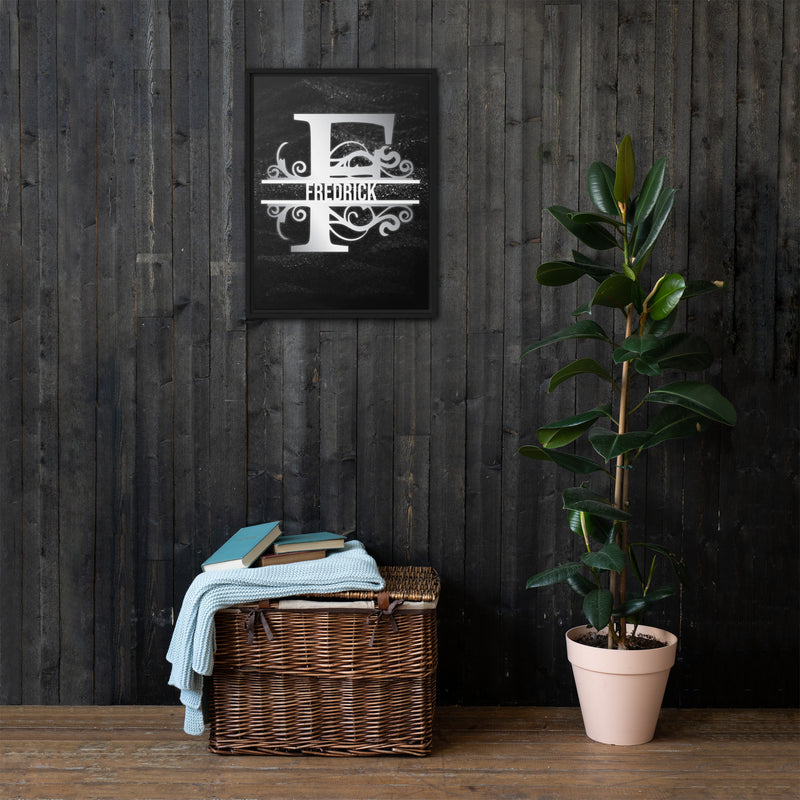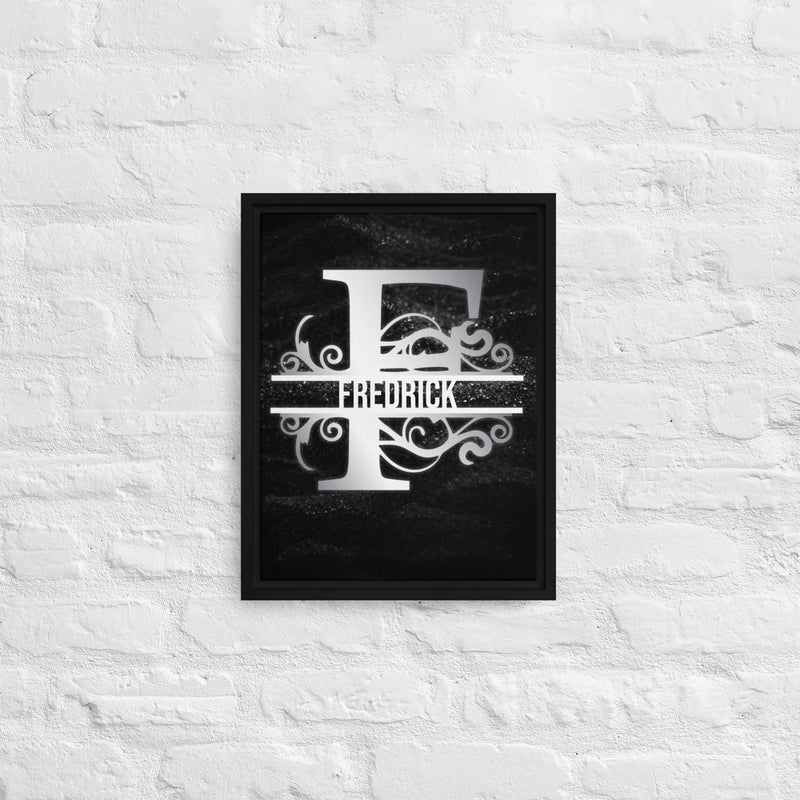 F Black & Chrome Vertical Split Initial Monogram on Canvas