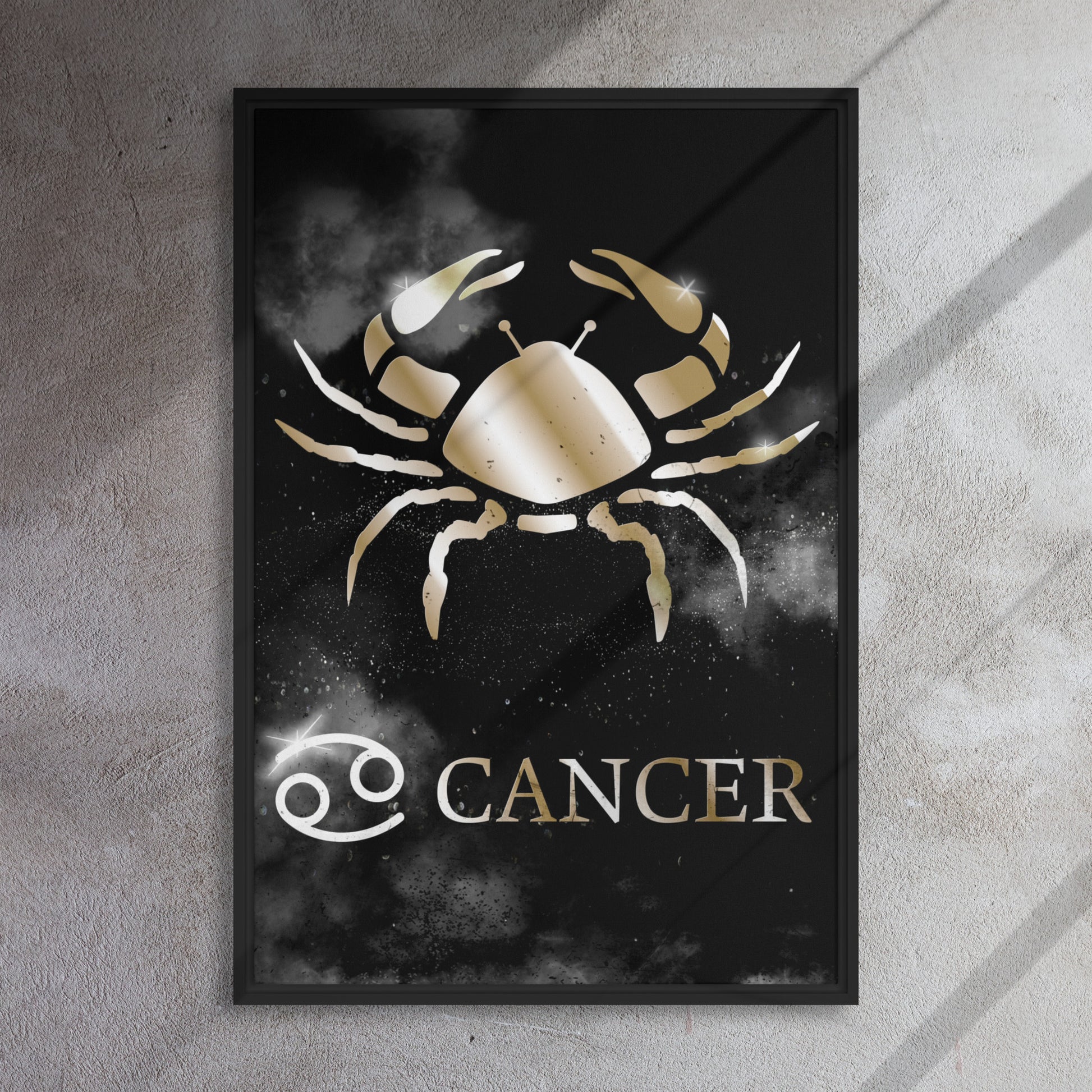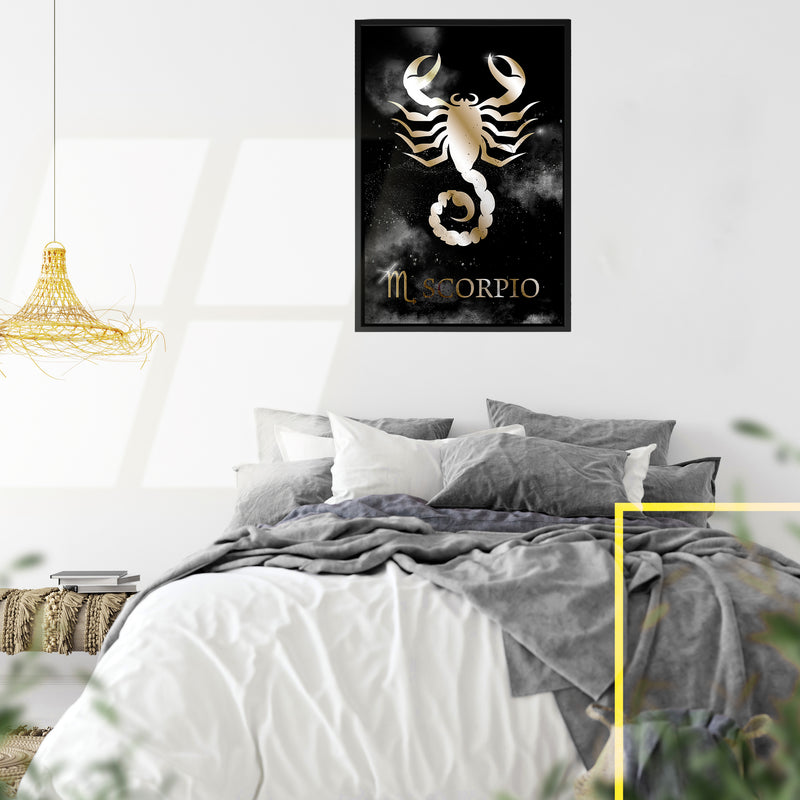 Introducing our stunning zodiac print on black framed canvas, perfect for astrology enthusiasts and anyone looking to add a touch of celestial beauty to their home decor. The metallic themed