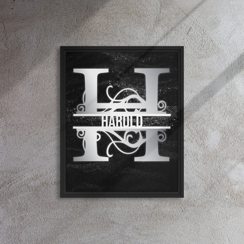 H Black & Chrome Vertical Split Initial on Canvas