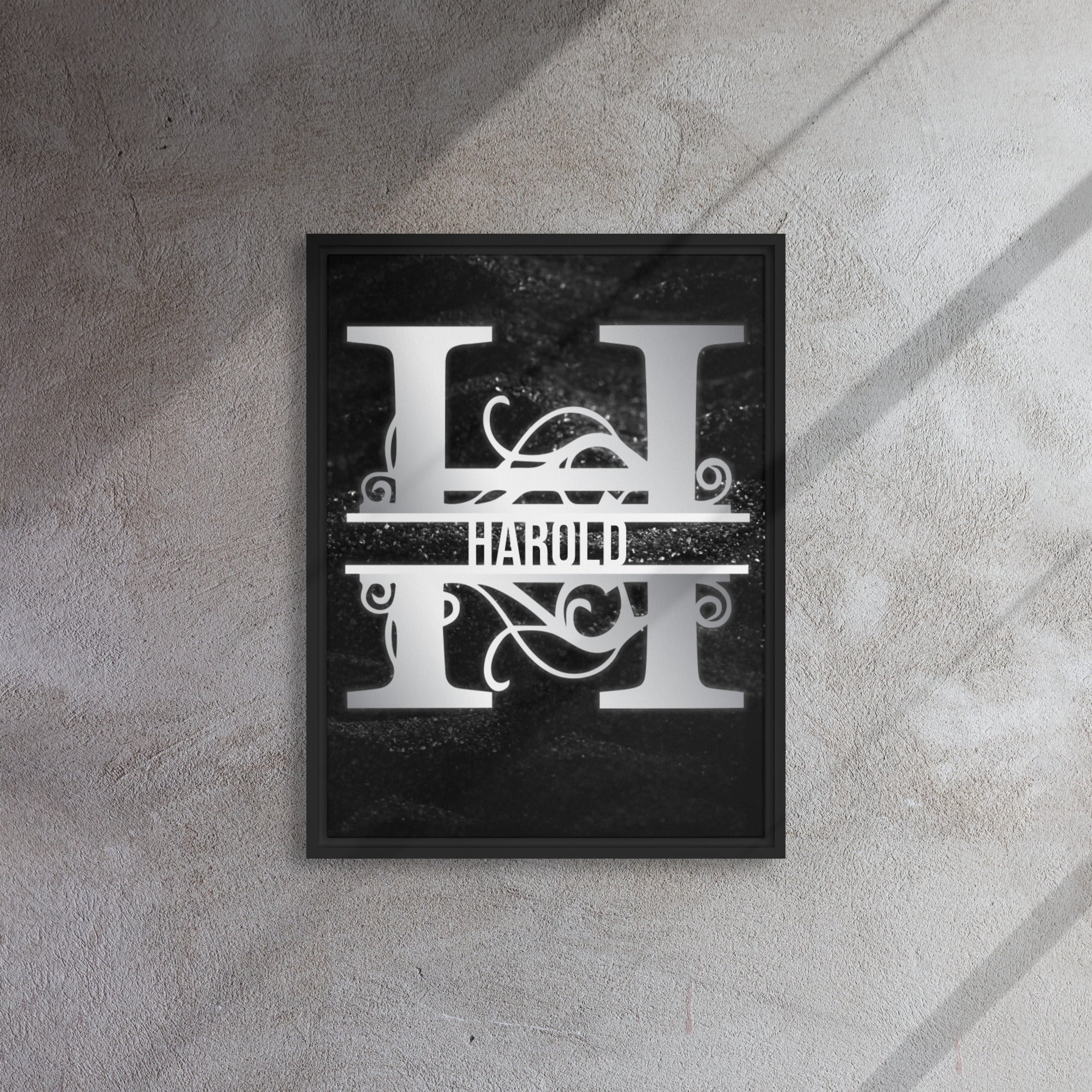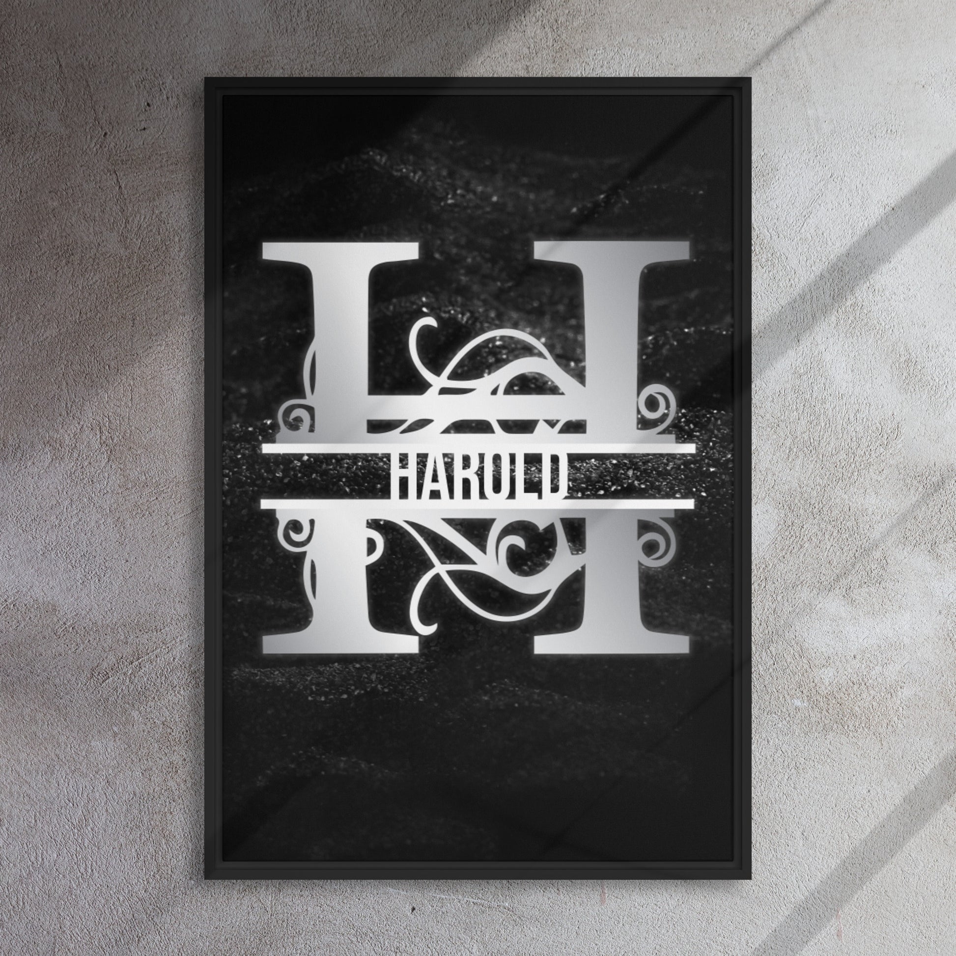 State your name with this ultra unique and expressive split-initial monogram! Bold, yet strikingly elegant, this customizable art piece is designed to inspire pride upon its viewers. For just a modest cost (customization included), adorn your own wall/ space or gift it to a loved one for their new home, birthday, graduation, or another celebration of advancement.