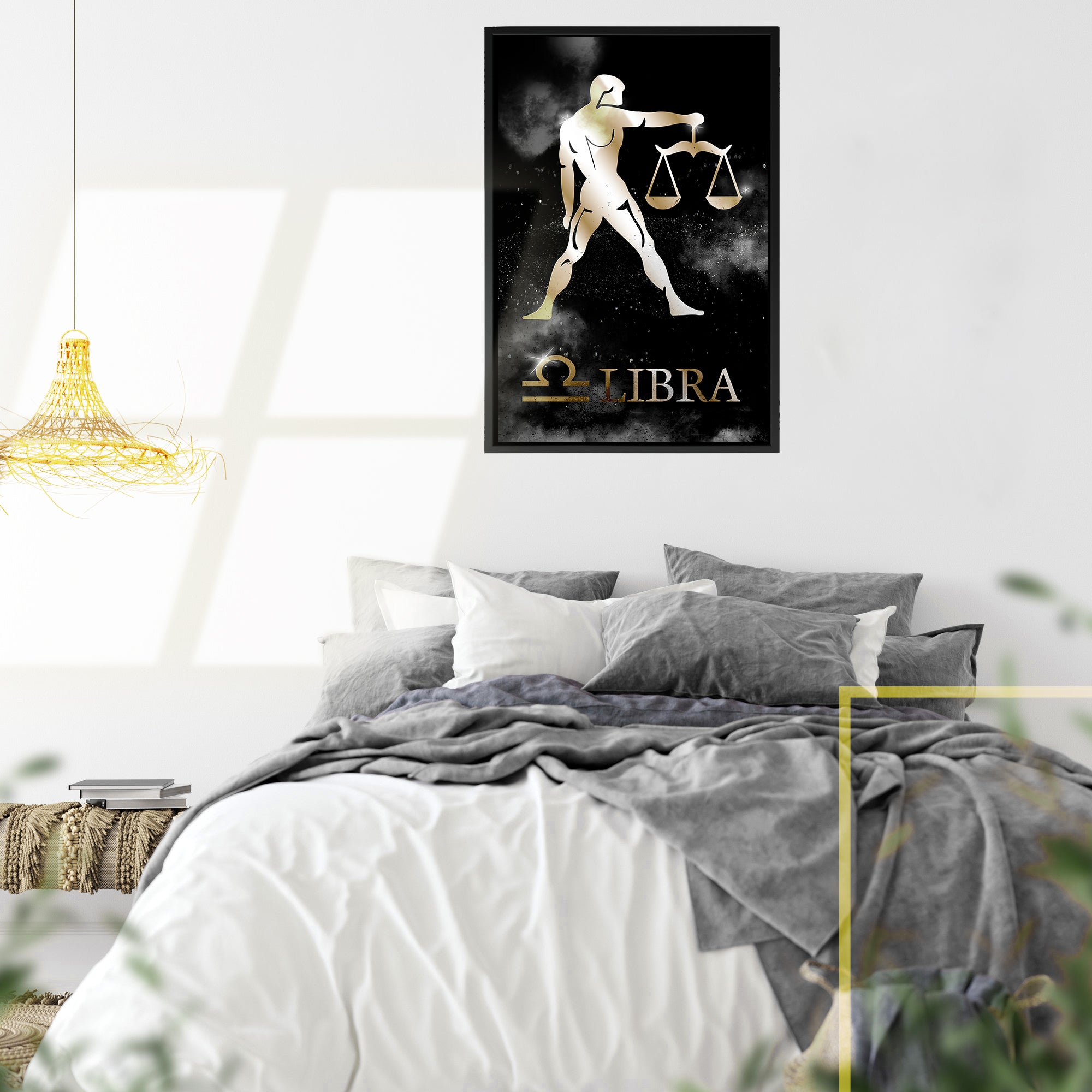 Introducing our stunning zodiac print on black framed canvas, perfect for astrology enthusiasts and anyone looking to add a touch of celestial beauty to their home decor. The metallic themed