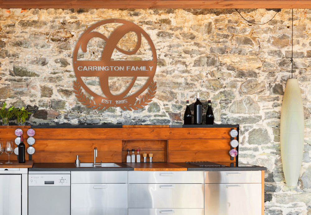 Steel cut This N Summer Table Steel Cut Customizable Monogram wall art is made from premium steel cut to offer intricate detailing. It is customizable with a personalized monogram to make your design one-of-a-kind. Each piece is crafted with the highest quality and attention to detail, delivering a durable and timeless art piece.