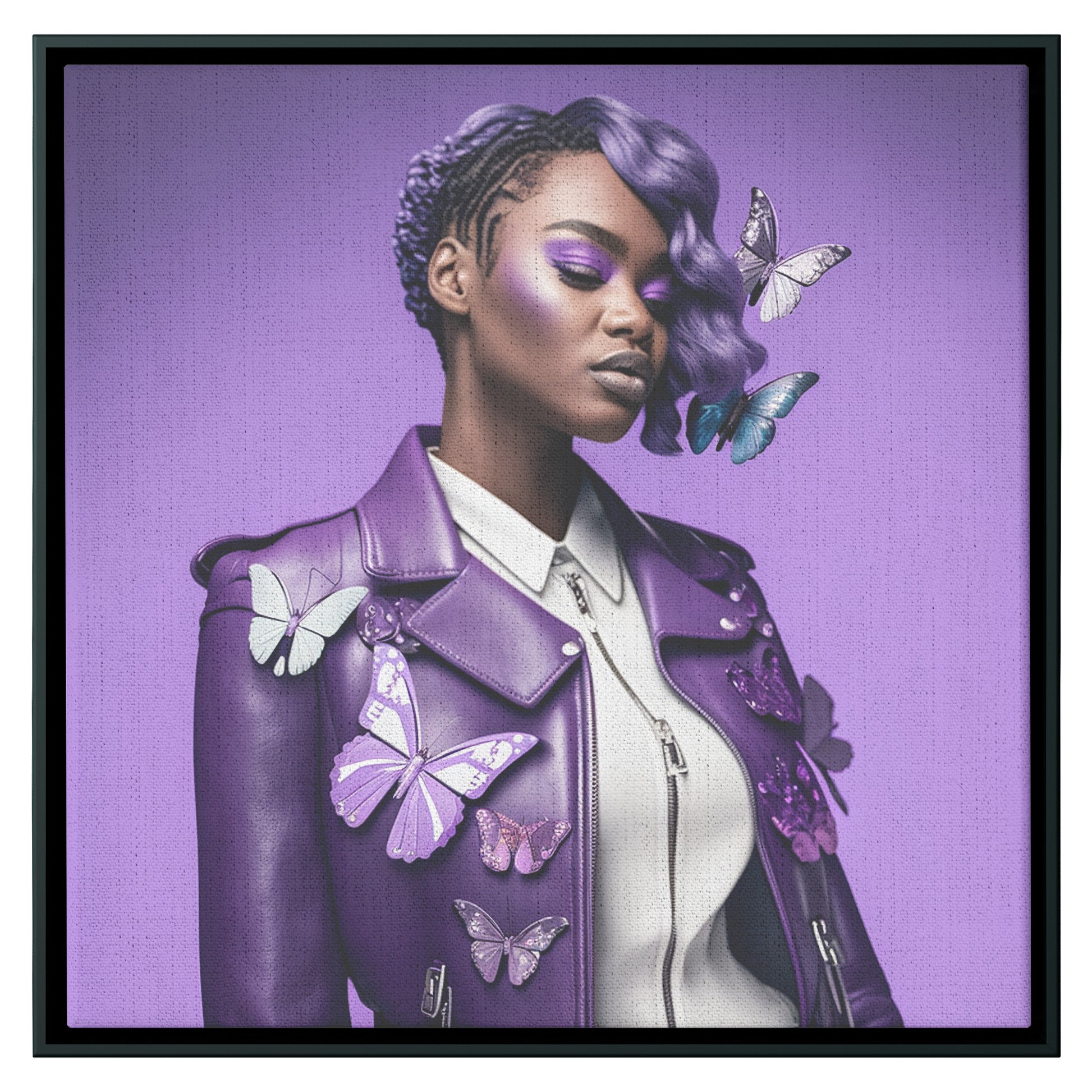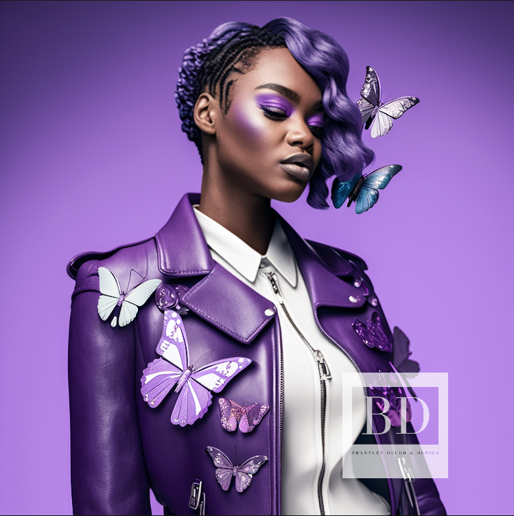 For those who appreciate a pop of color in there space, this model sports a leather purple jacket and is adorned with purple butterflies. She is one with herself and her place in her universe. Let her help complete your sense of calm, positive attitude, and inspiration with high fashion.