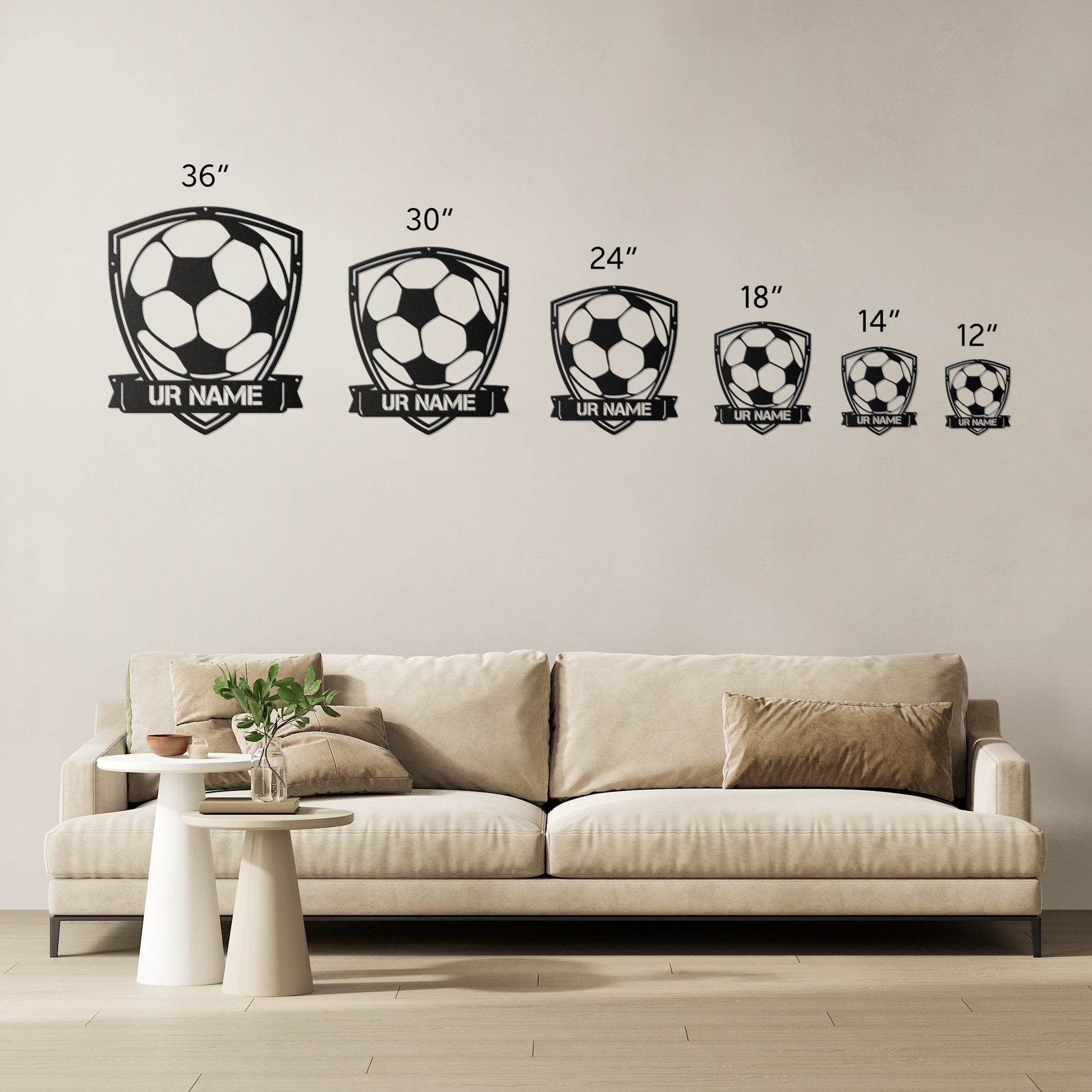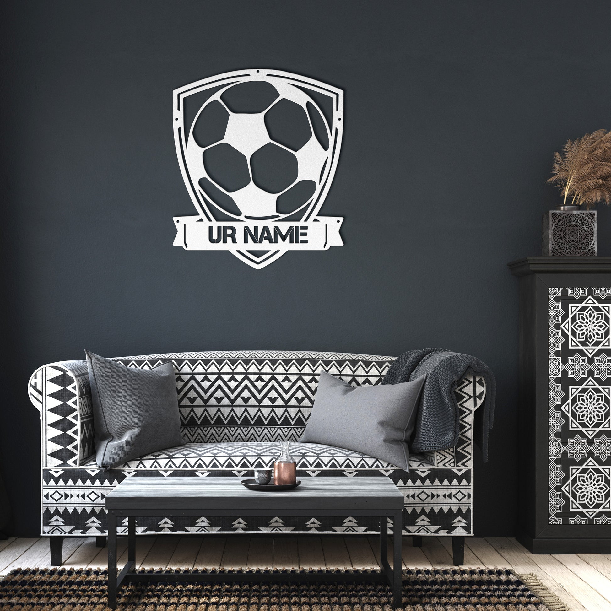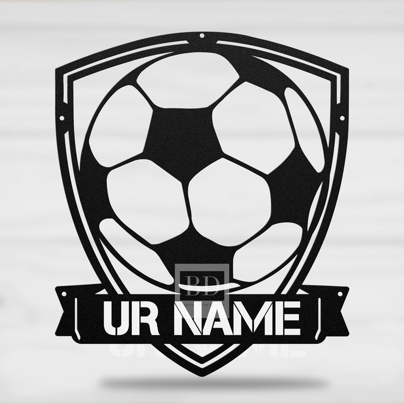 If you or a special someone loves or loves to play soccer, adorn your space with with this unique wall piece! It displays a soccer ball and shield and is cut with precision with the worlds finest cutting edge tools and materials. This sign is made from 18 gauge steel and powder coated with either white or black to best match the space where you want it displayed.