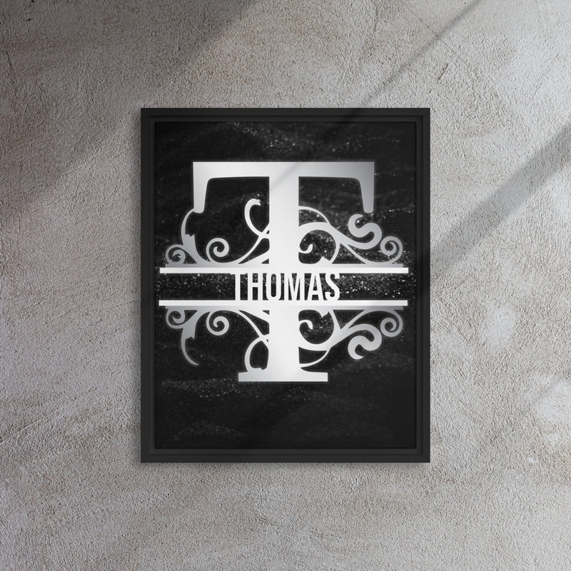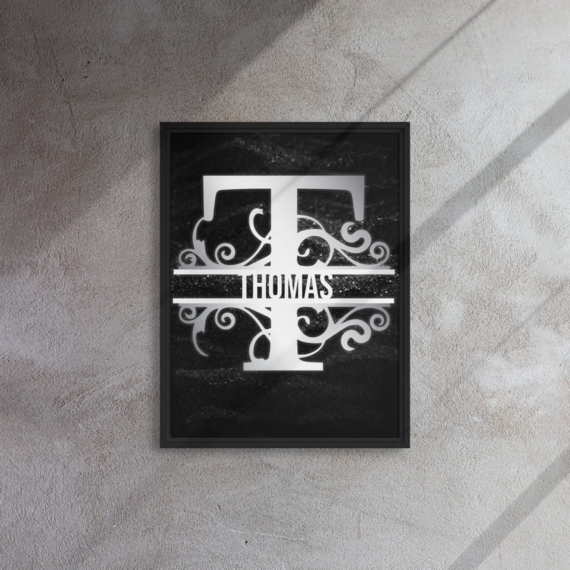 T Black & Chrome Vertical Split Initial Monogram on Canvas