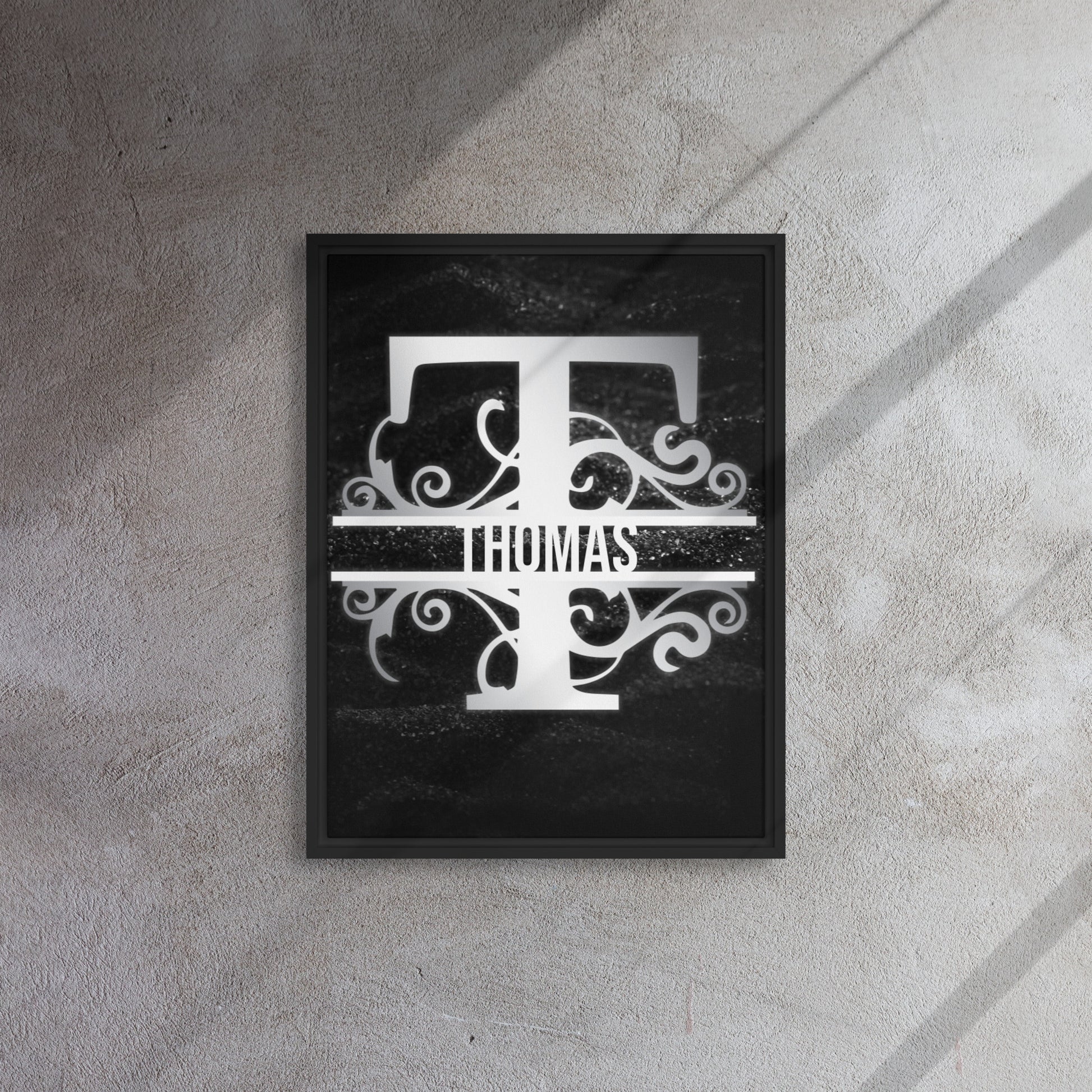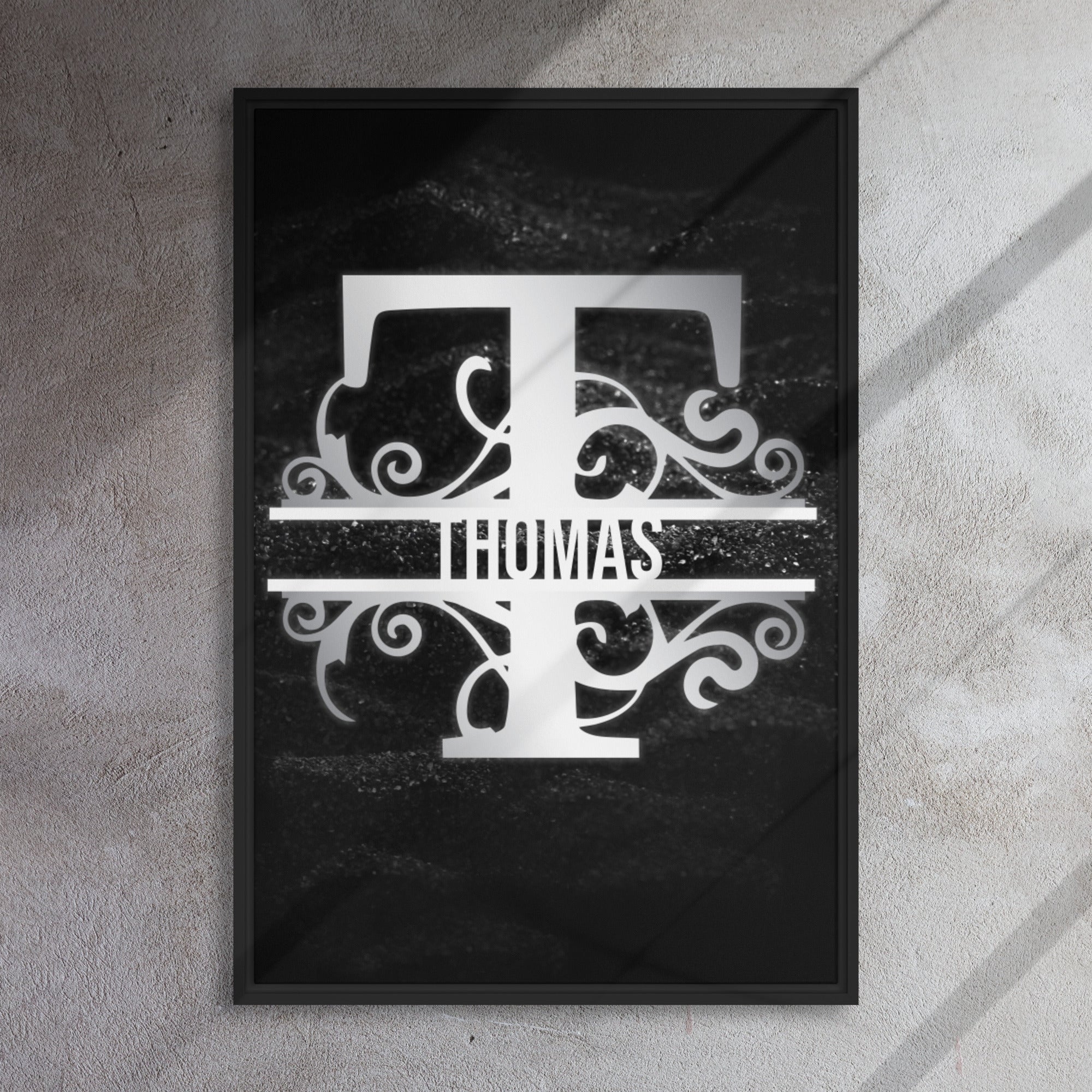 State your name with this ultra unique and expressive split-initial monogram! Bold, yet strikingly elegant, this customizable art piece is designed to inspire pride upon its viewers. For just a modest cost (customization included), adorn your own wall/ space or gift it to a loved one for their new home, birthday, graduation, or another celebration of advancement.