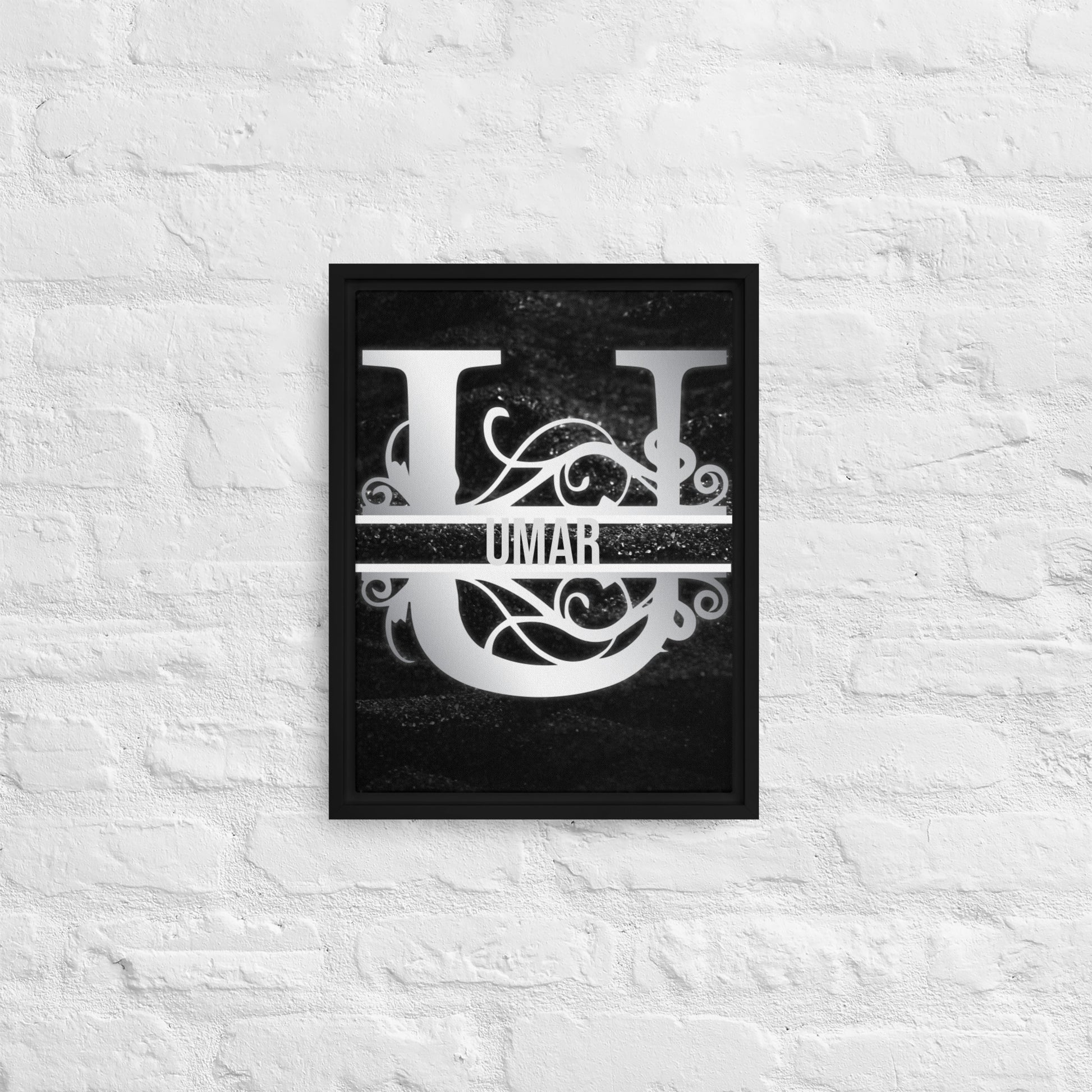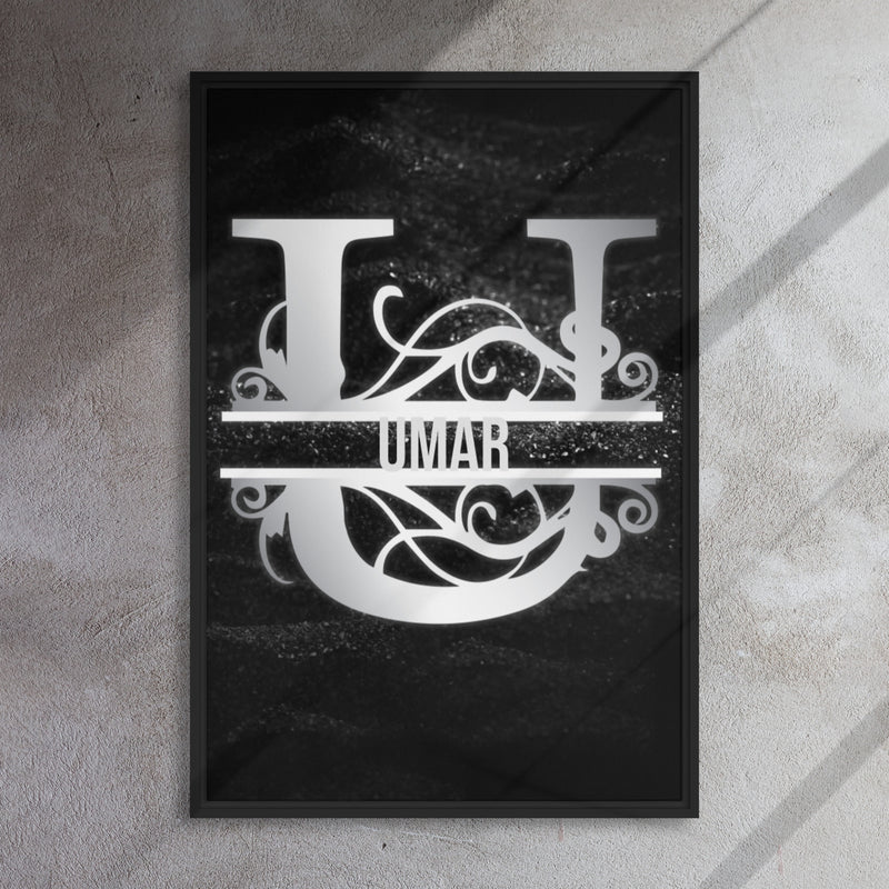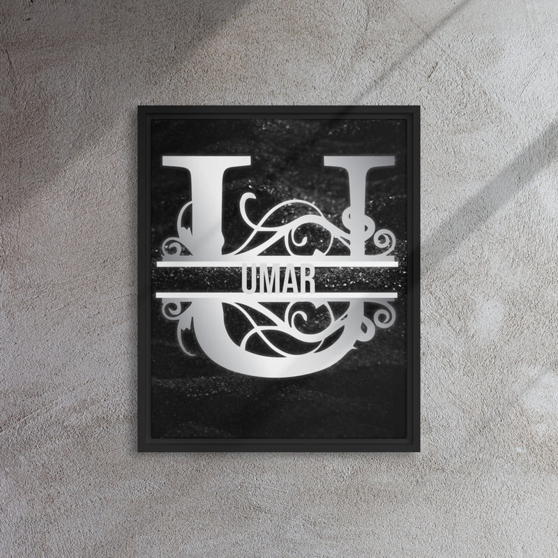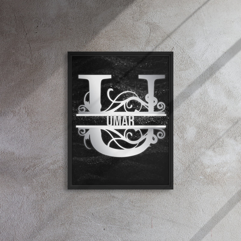 U Black & Chrome Vertical Split Initial Monogram on Canvas