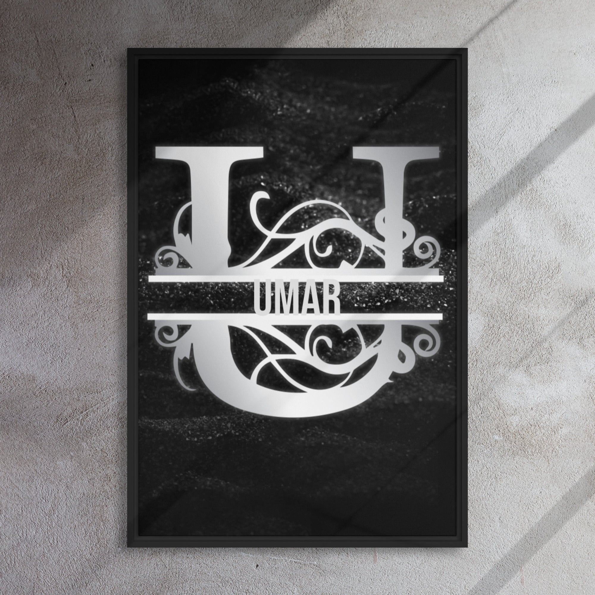 State your name with this ultra unique and expressive split-initial monogram! Bold, yet strikingly elegant, this customizable art piece is designed to inspire pride upon its viewers. For just a modest cost (customization included), adorn your own wall/ space or gift it to a loved one for their new home, birthday, graduation, or another celebration of advancement.