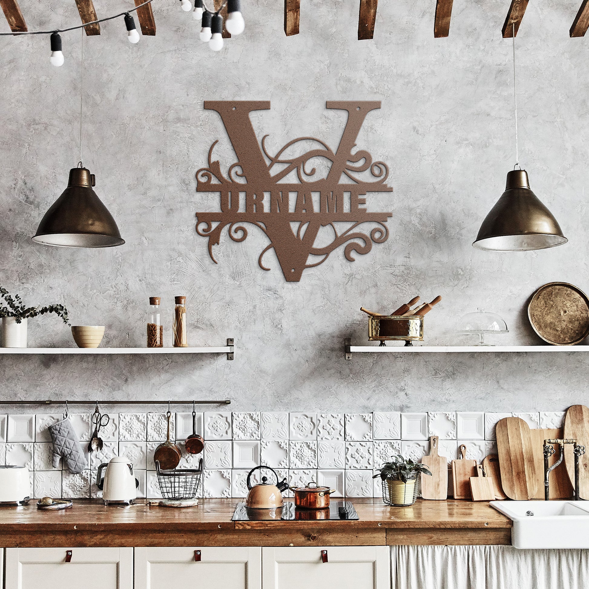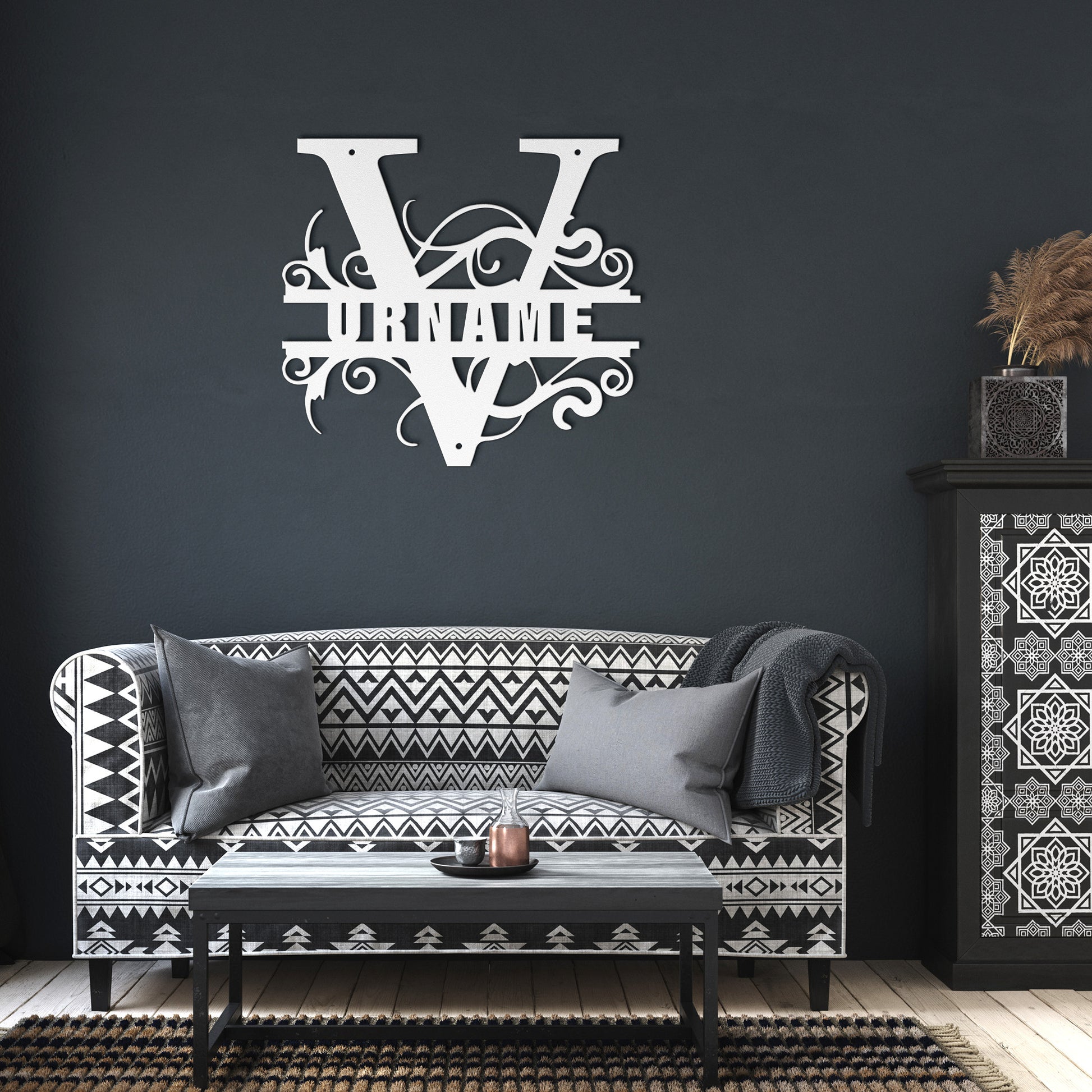 V Barn Door Split Letter Steel Custom Monogram