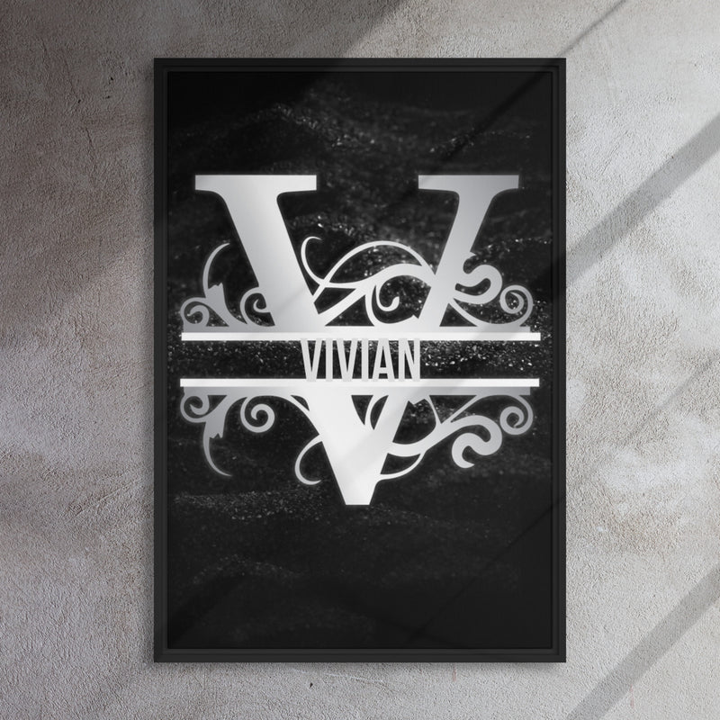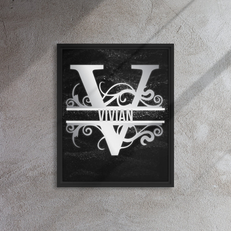 State your name with this ultra unique and expressive split-initial monogram! Bold, yet strikingly elegant, this customizable art piece is designed to inspire pride upon its viewers. For just a modest cost (customization included), adorn your own wall/ space or gift it to a loved one for their new home, birthday, graduation, or another celebration of advancement.