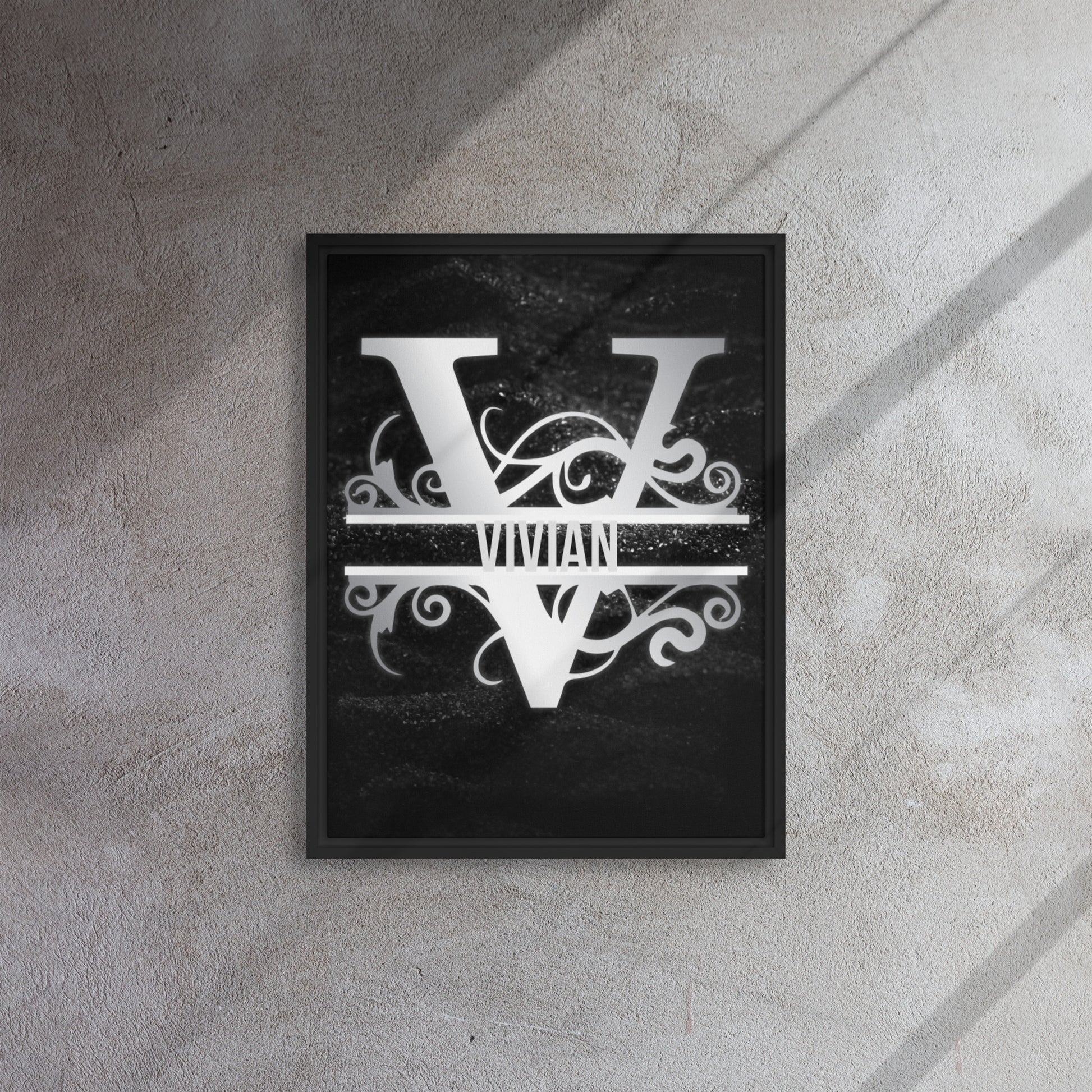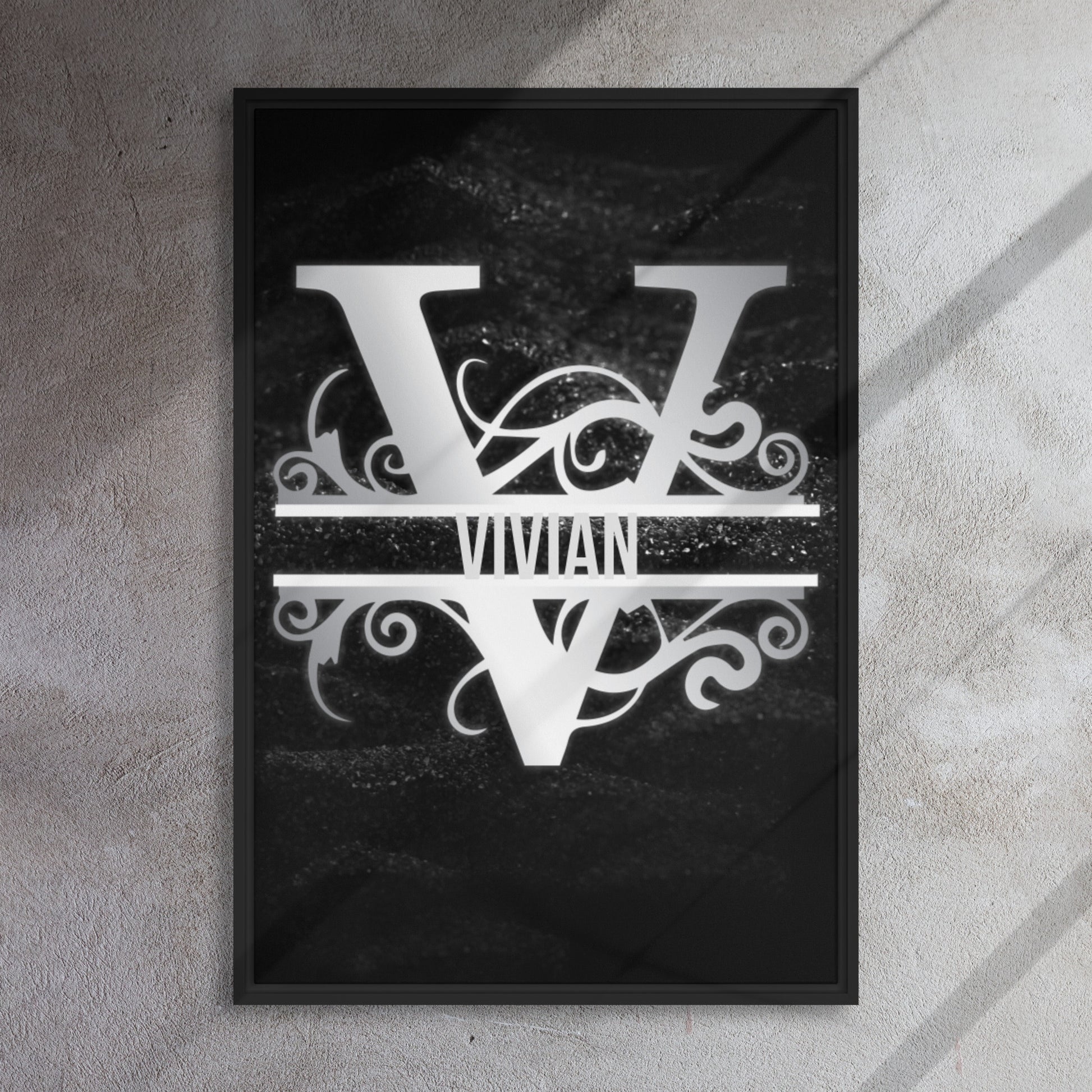 V Black & Chrome Vertical Split Initial Monogram on Canvas