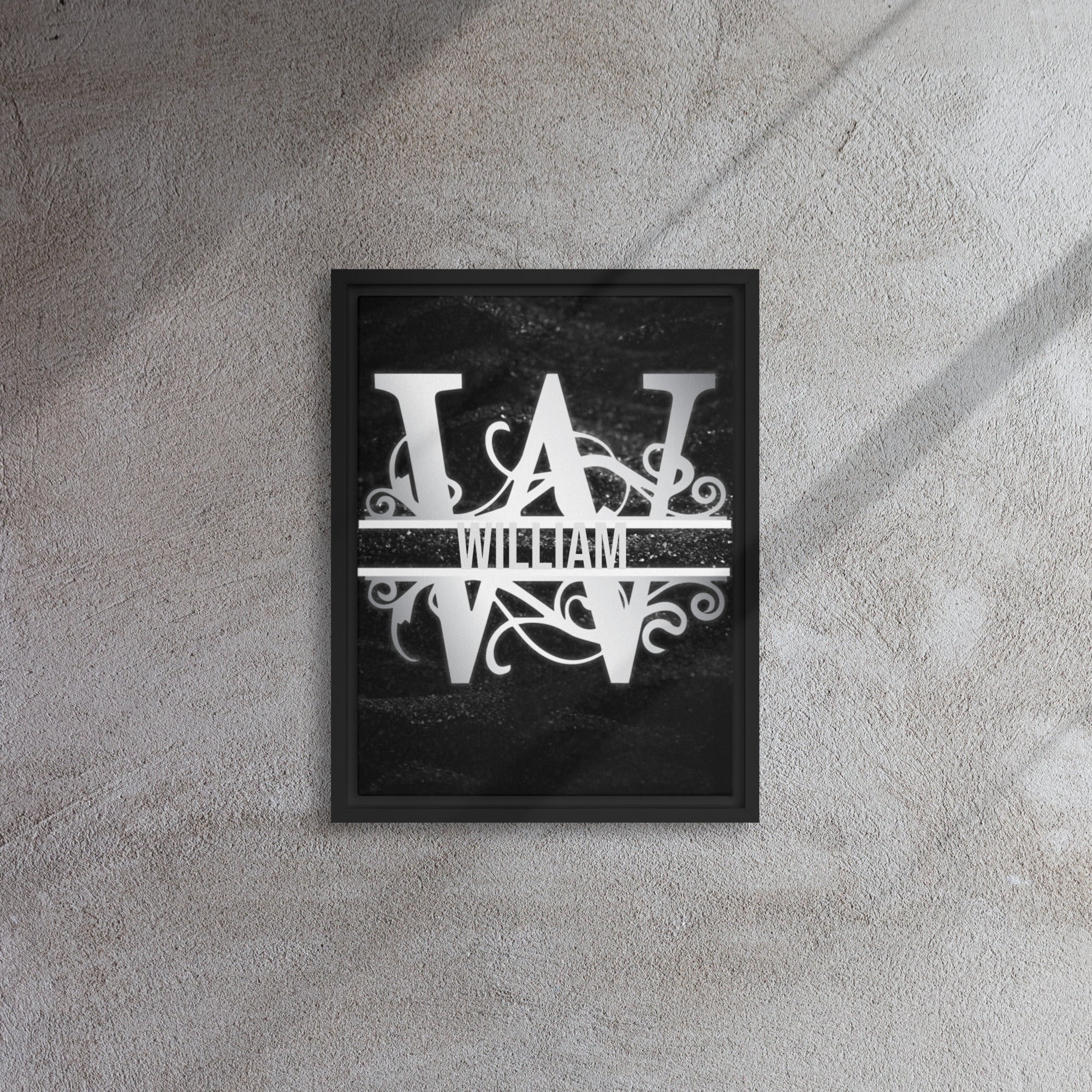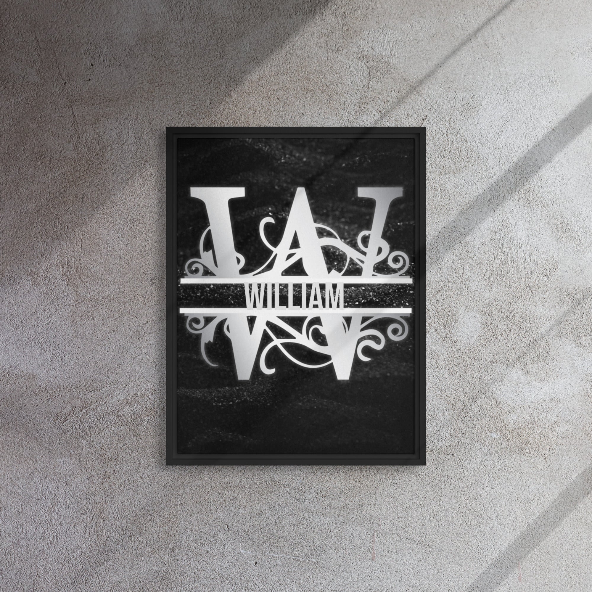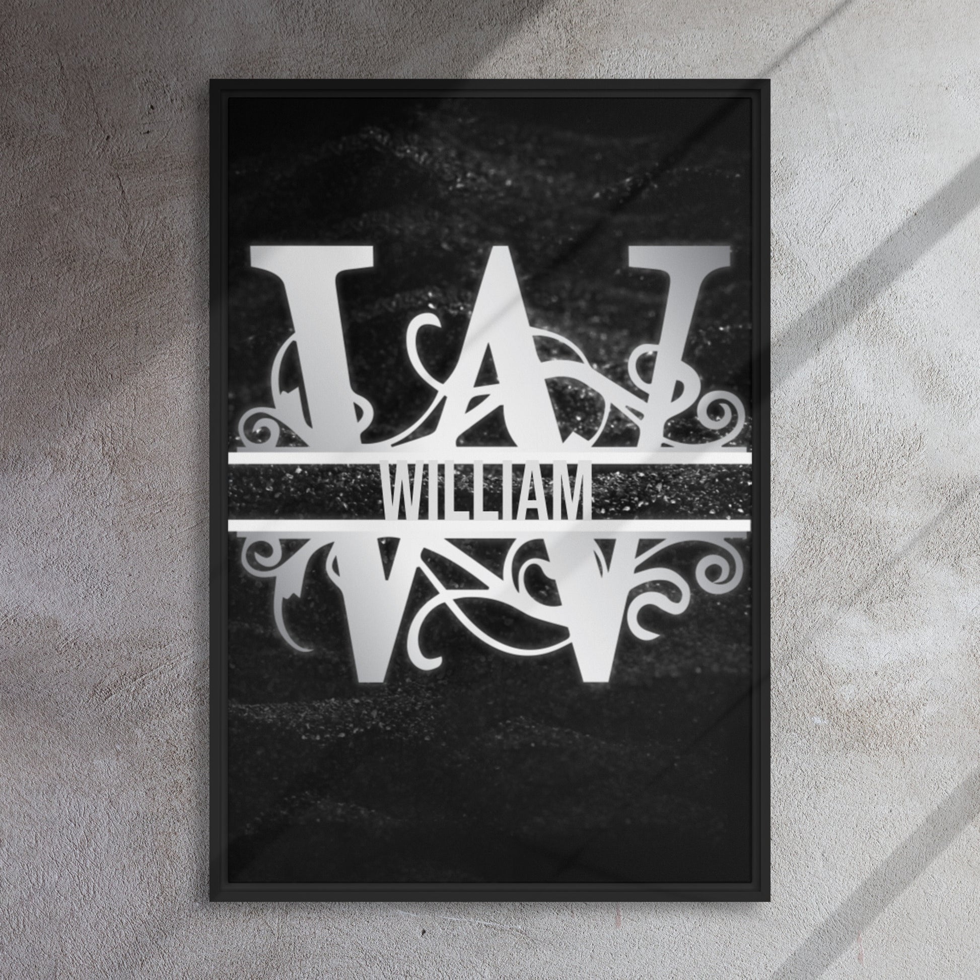 W Black & Chrome Vertical Split Initial Monogram on Canvas