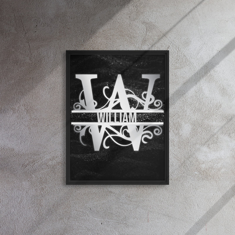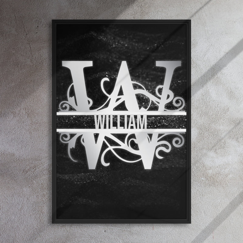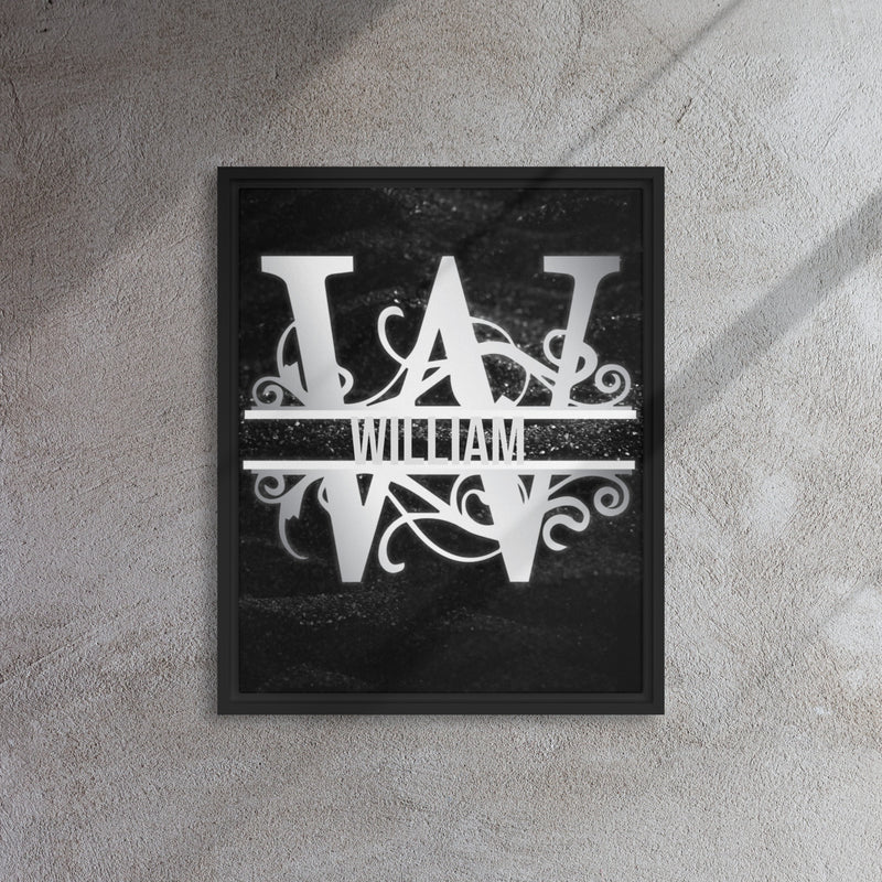 State your name with this ultra unique and expressive split-initial monogram! Bold, yet strikingly elegant, this customizable art piece is designed to inspire pride upon its viewers. For just a modest cost (customization included), adorn your own wall/ space or gift it to a loved one for their new home, birthday, graduation, or another celebration of advancement.