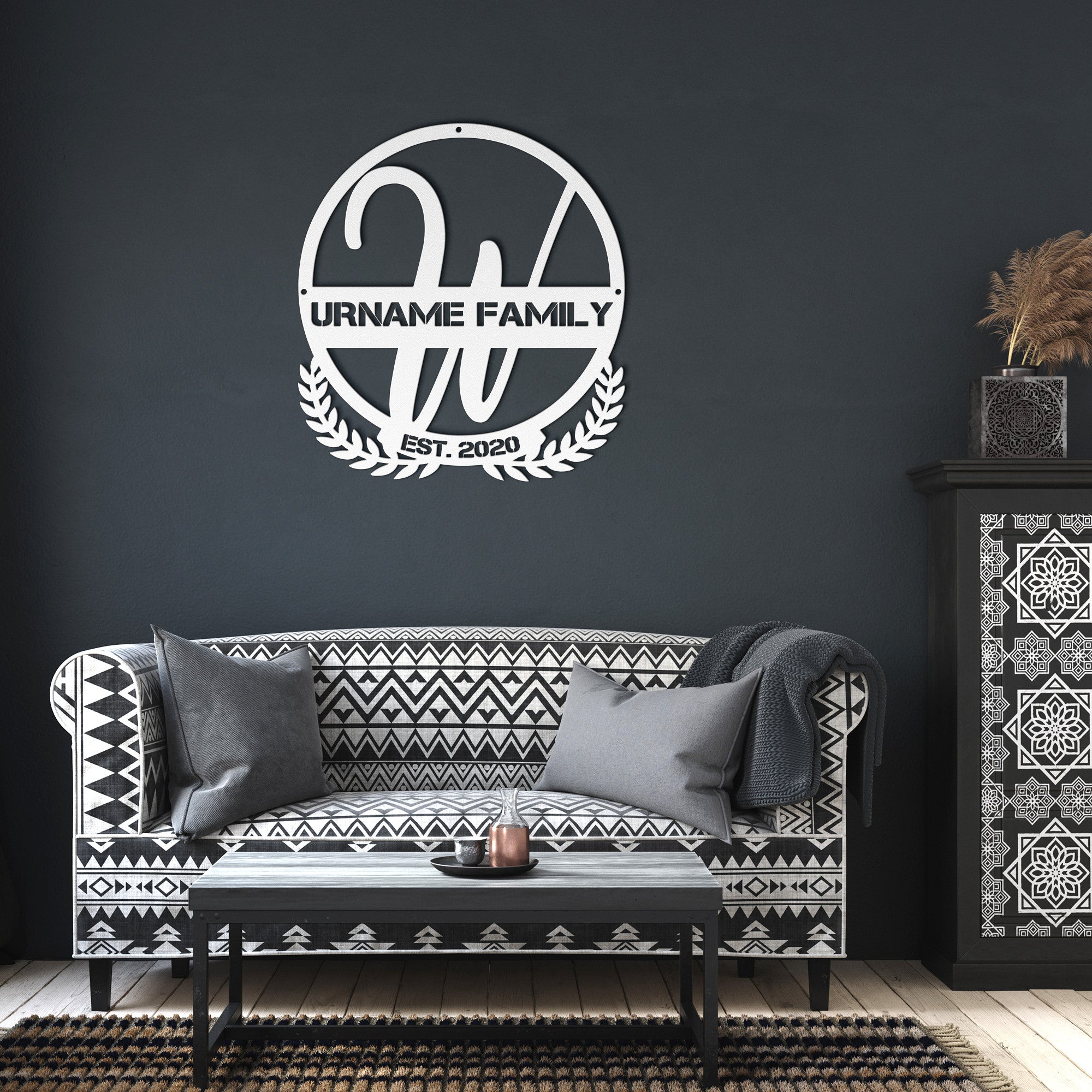 Elevate your home decor with a beautiful metal sign. Made with 18 gauge steel and powder coated in your choice of 3 colors, this sign is built to withstand the elements for years of enjoyment. Add a touch of elegance to your home on the inside, outside, or both!ht or width of the sign depending on physical orientation