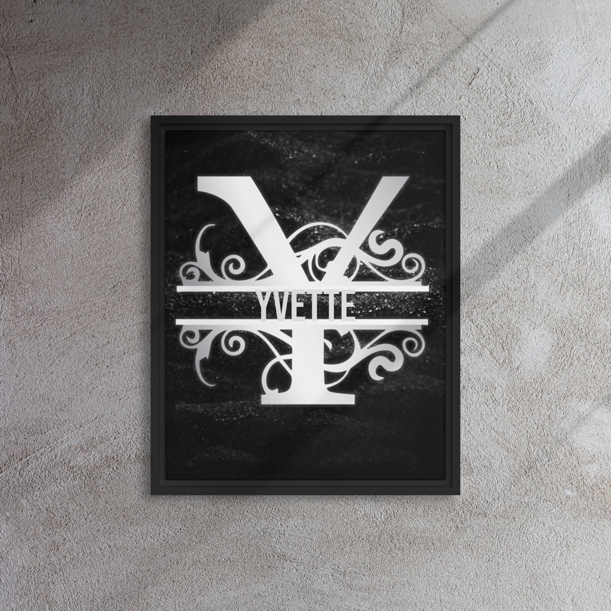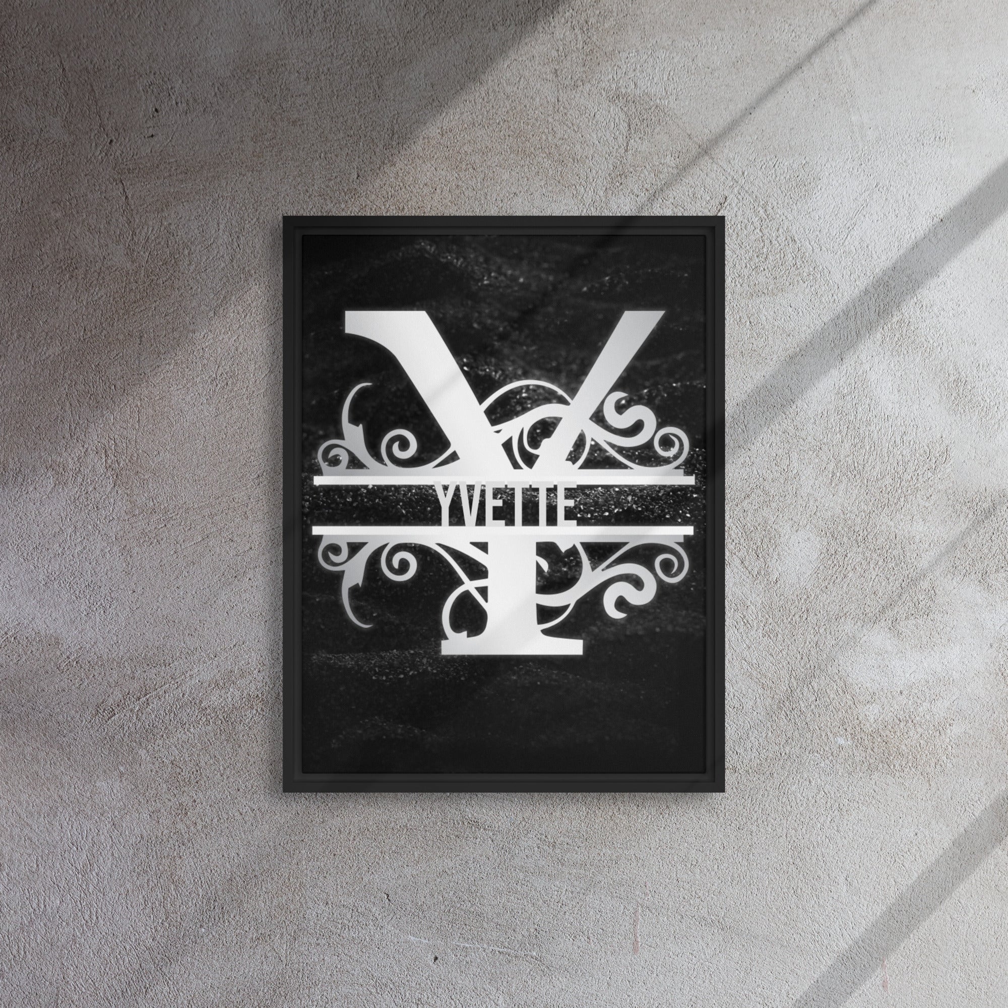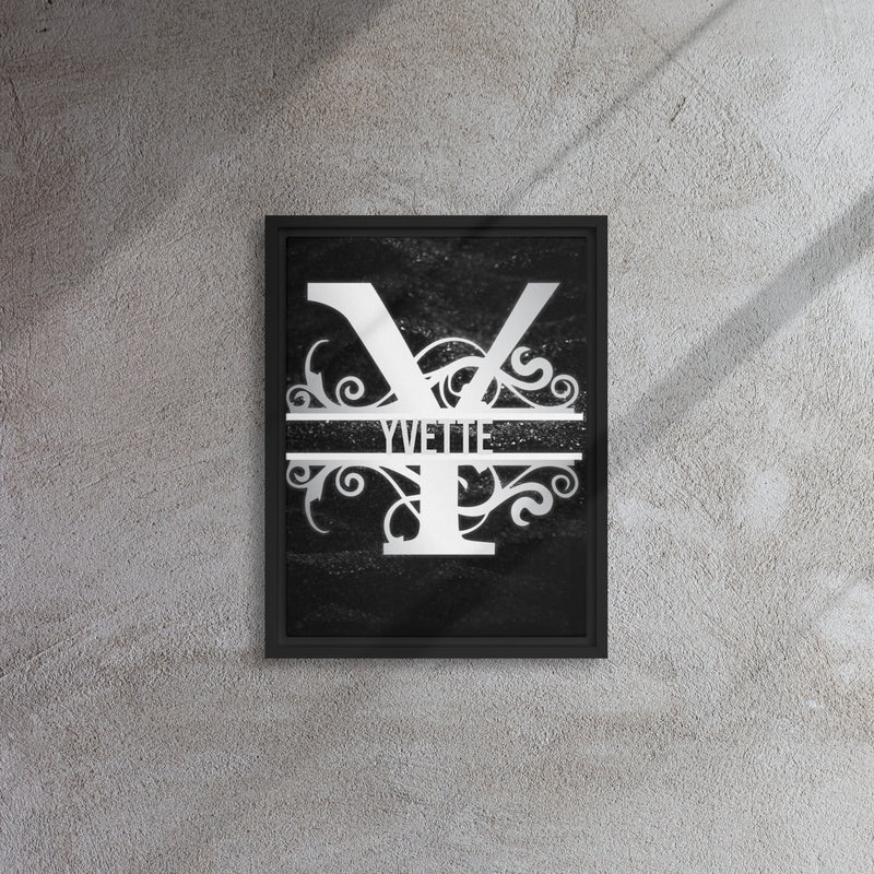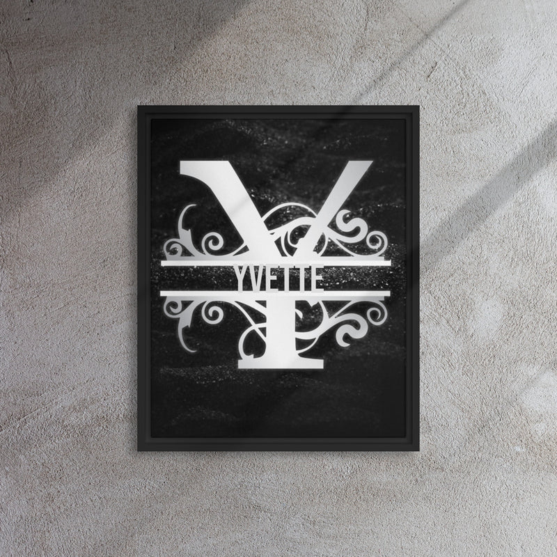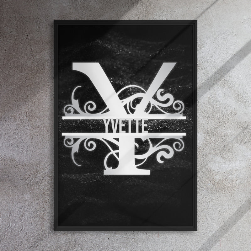 Y Black & Chrome Vertical Split Initial Monogram on Canvas